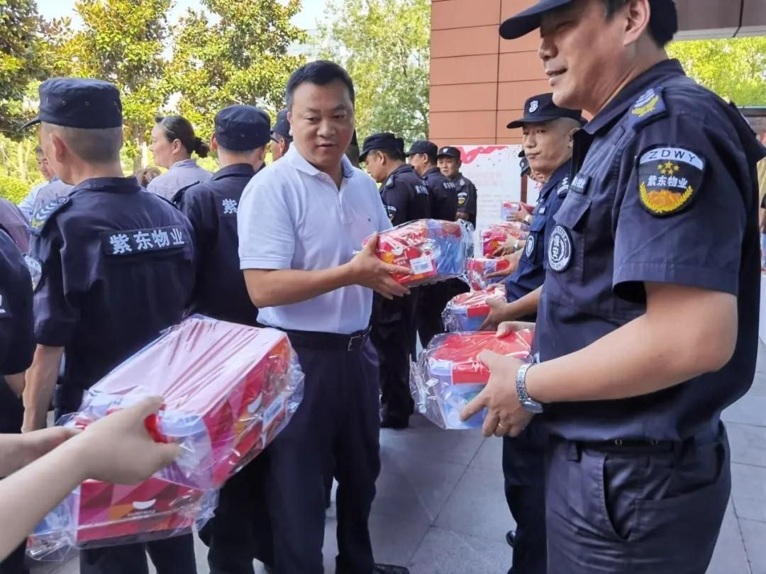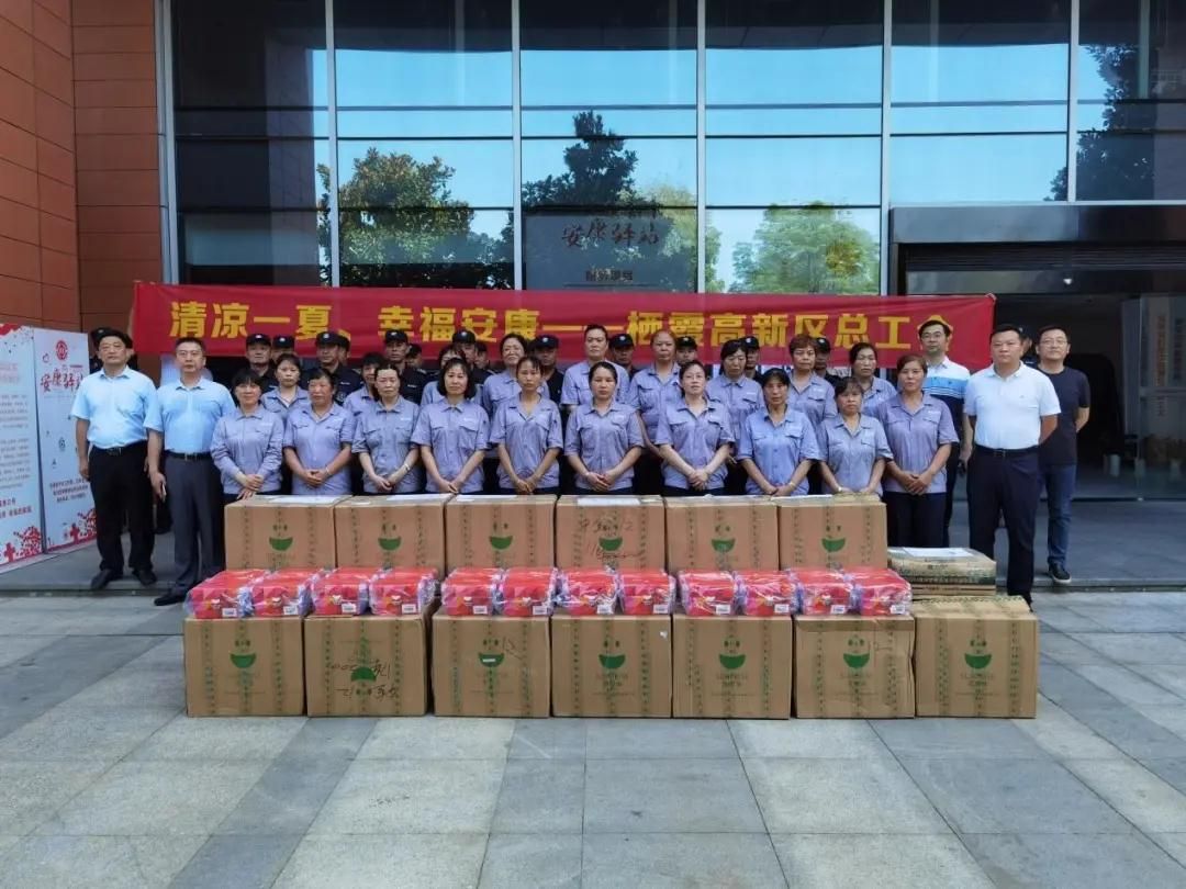 時(shí)值酷暑,高溫難耐。棲霞高新區(qū)開展“清涼一夏、幸福安康”活動,高新區(qū)領(lǐng)導(dǎo)班子看望慰問了高溫下堅(jiān)守崗位的保潔、保安、樓棟長等一線工作人員,為他們送去了防暑降溫物品,感謝他們在炎炎夏日為維護(hù)園區(qū)秩序,保障環(huán)境衛(wèi)生做出的貢獻(xiàn)。并叮囑一線職工們重視安全防護(hù),注意防暑降溫。