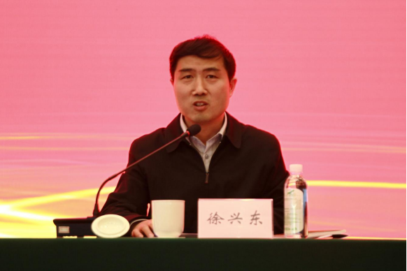 棲霞區(qū)總工會(huì)常務(wù)副主席徐興東為職工創(chuàng)新工作室頒獎(jiǎng)。