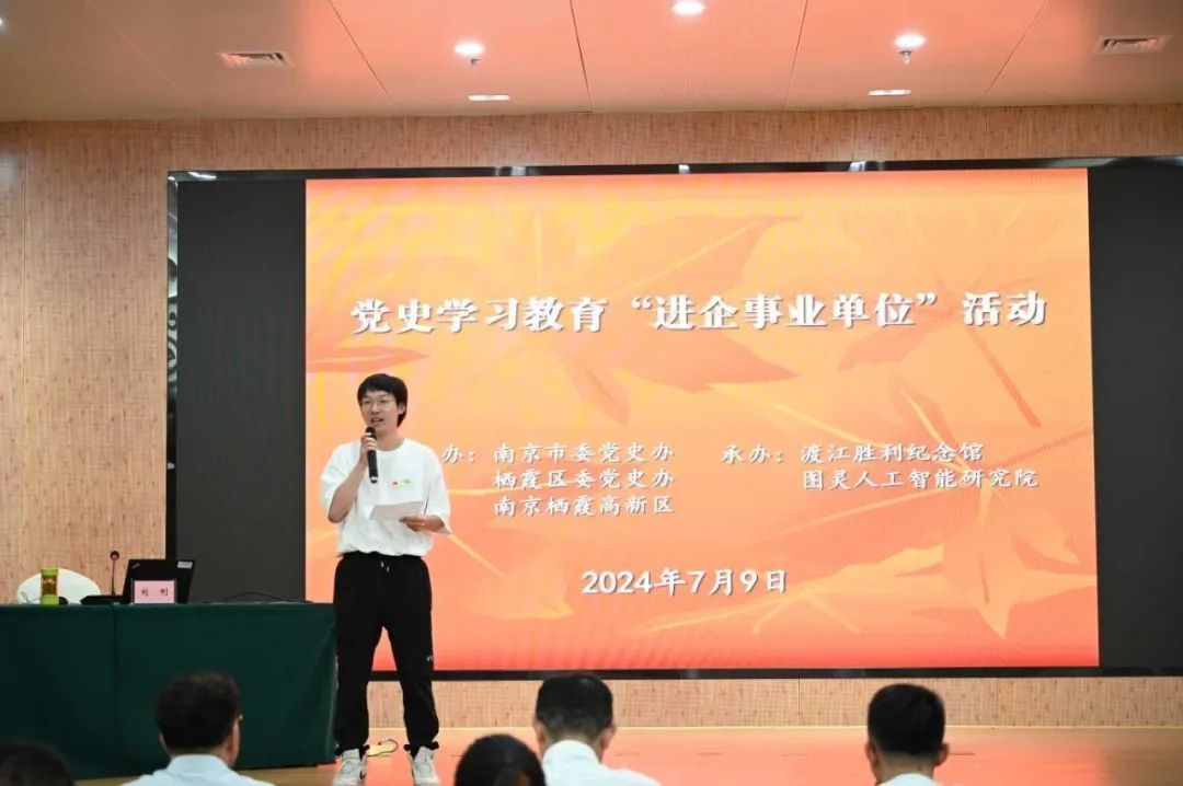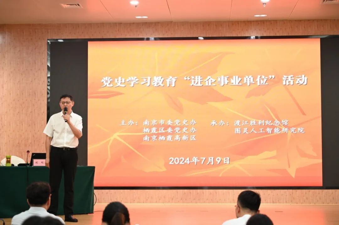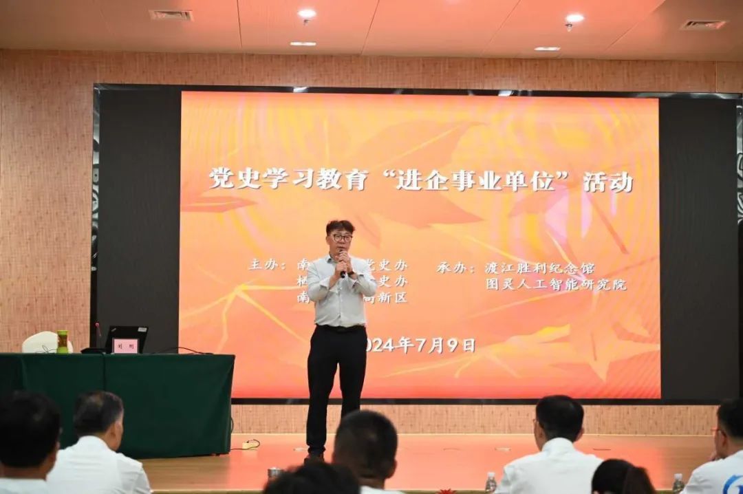 學(xué)史明理,學(xué)史增信,學(xué)史崇德,學(xué)史力行。為進(jìn)一步推動(dòng)黨史學(xué)習(xí)教育走深走實(shí),強(qiáng)化新時(shí)代黨員的責(zé)任與擔(dān)當(dāng),7月9日,由南京市委黨史辦、棲霞區(qū)委黨史辦、棲霞高新區(qū)主辦,渡江勝利紀(jì)念館、圖靈人工智能研究院承辦的黨史學(xué)習(xí)教育“進(jìn)企事業(yè)單位”活動(dòng)在渡江勝利紀(jì)念館圓滿舉行?;顒?dòng)由市委黨史辦宣聯(lián)處處長(zhǎng)、一級(jí)調(diào)研員徐國(guó)前主持。