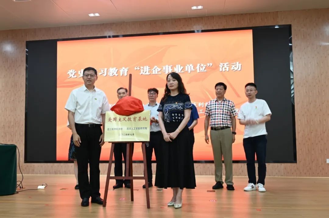 活動(dòng)現(xiàn)場(chǎng),圖靈院CEO李強(qiáng)與渡江勝利紀(jì)念館黨支部書記、副館長(zhǎng)徐麗共同為愛國(guó)主義教育基地揭牌,雙方表示將以此次活動(dòng)為契機(jī),進(jìn)一步推動(dòng)黨史學(xué)習(xí)教育常態(tài)化長(zhǎng)效化,傳承紅色基因,弘揚(yáng)時(shí)代精神。