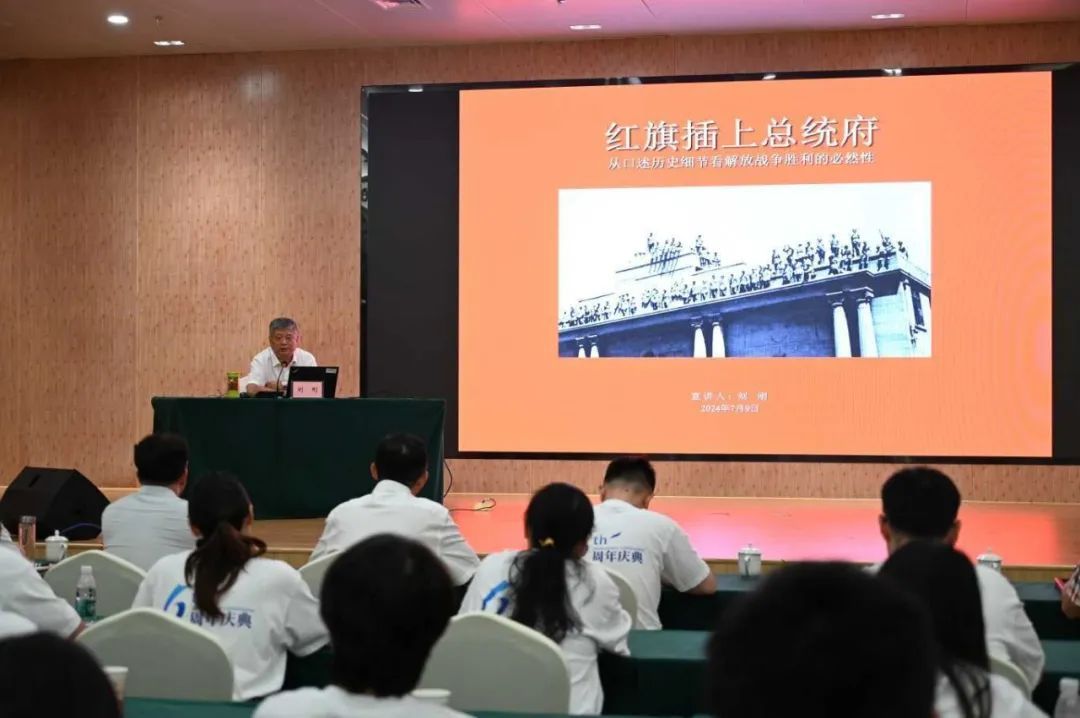 隨后,江蘇省政協(xié)辦公廳原一級(jí)調(diào)研員、南京中國(guó)近現(xiàn)代史遺址博物館原黨總支委員劉剛,為大家?guī)?lái)了一堂主題為《紅旗插上總統(tǒng)府——從口述歷史細(xì)節(jié)看解放戰(zhàn)爭(zhēng)勝利的必然性》的精彩授課。課程內(nèi)容深入淺出,生動(dòng)再現(xiàn)了解放戰(zhàn)爭(zhēng)的光輝歷程,讓大家深刻理解了中國(guó)共產(chǎn)黨領(lǐng)導(dǎo)下的解放戰(zhàn)爭(zhēng)勝利的歷史必然性。