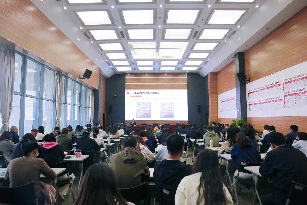 企業(yè)裝修中消防報備及驗收等問題是企業(yè)特別關心的問題之一,為及時了解掌握有關消防報備政策和辦理過程中的要點,達到在項目招引、項目服務、裝修管理過程中,補短板、促提高、保安全的目的,10月25日下午,邀請區(qū)住建局消防科負責人盧進鋒科長,為棲霞高新區(qū)全體人員及物業(yè)公司部門人員,做“裝修消防報備政策解讀及辦理過程中的要點解析” 主題培訓。