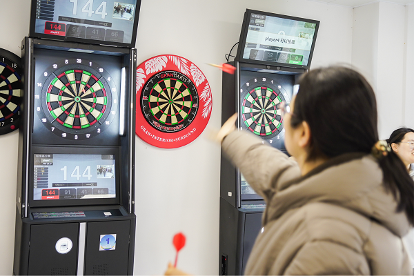 精彩刺激的飛鏢賽開(kāi)始了,大家來(lái)一起目睹他們的風(fēng)采吧!選手們手持飛鏢,屏氣凝神、沉著冷靜,每一次投擲都伴隨著大家的歡呼喝彩聲。