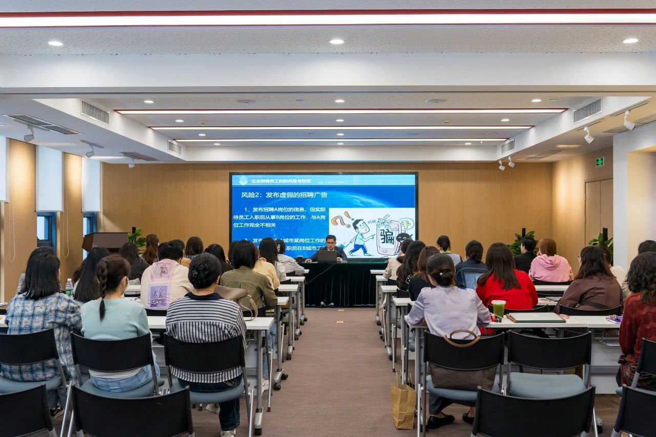 為進一步規(guī)范企業(yè)用工管理,防范法律風(fēng)險,促進區(qū)域勞動關(guān)系和諧穩(wěn)定,5月23日下午,棲霞高新區(qū)總工會舉辦“企業(yè)招聘、入職、試用期管理及離職的風(fēng)險與防范”專題培訓(xùn)講座。本次講座特邀北京德和衡(南京)律師事務(wù)所資深律師宋璐擔(dān)任主講,園區(qū)近50家企業(yè)人力資源負(fù)責(zé)人參會。