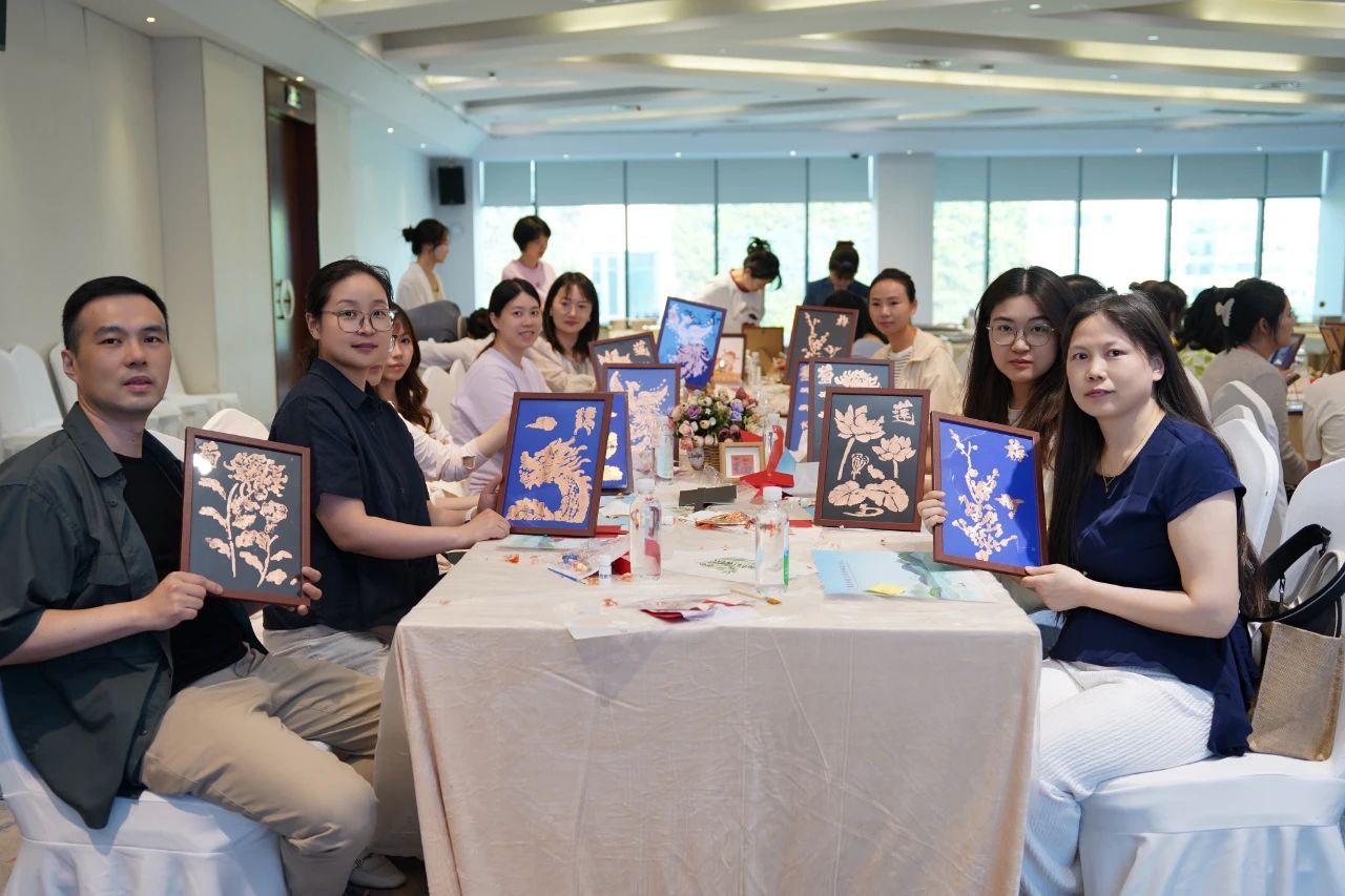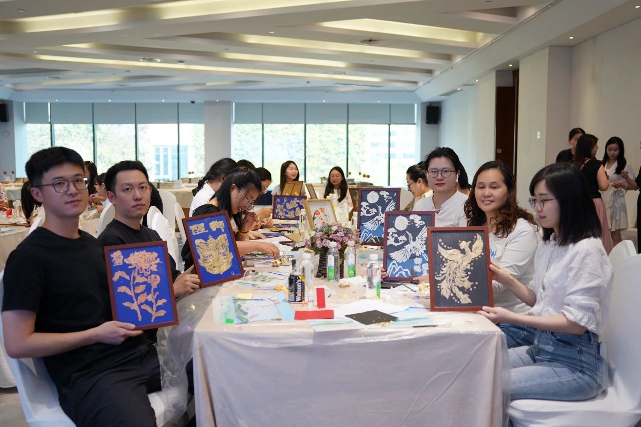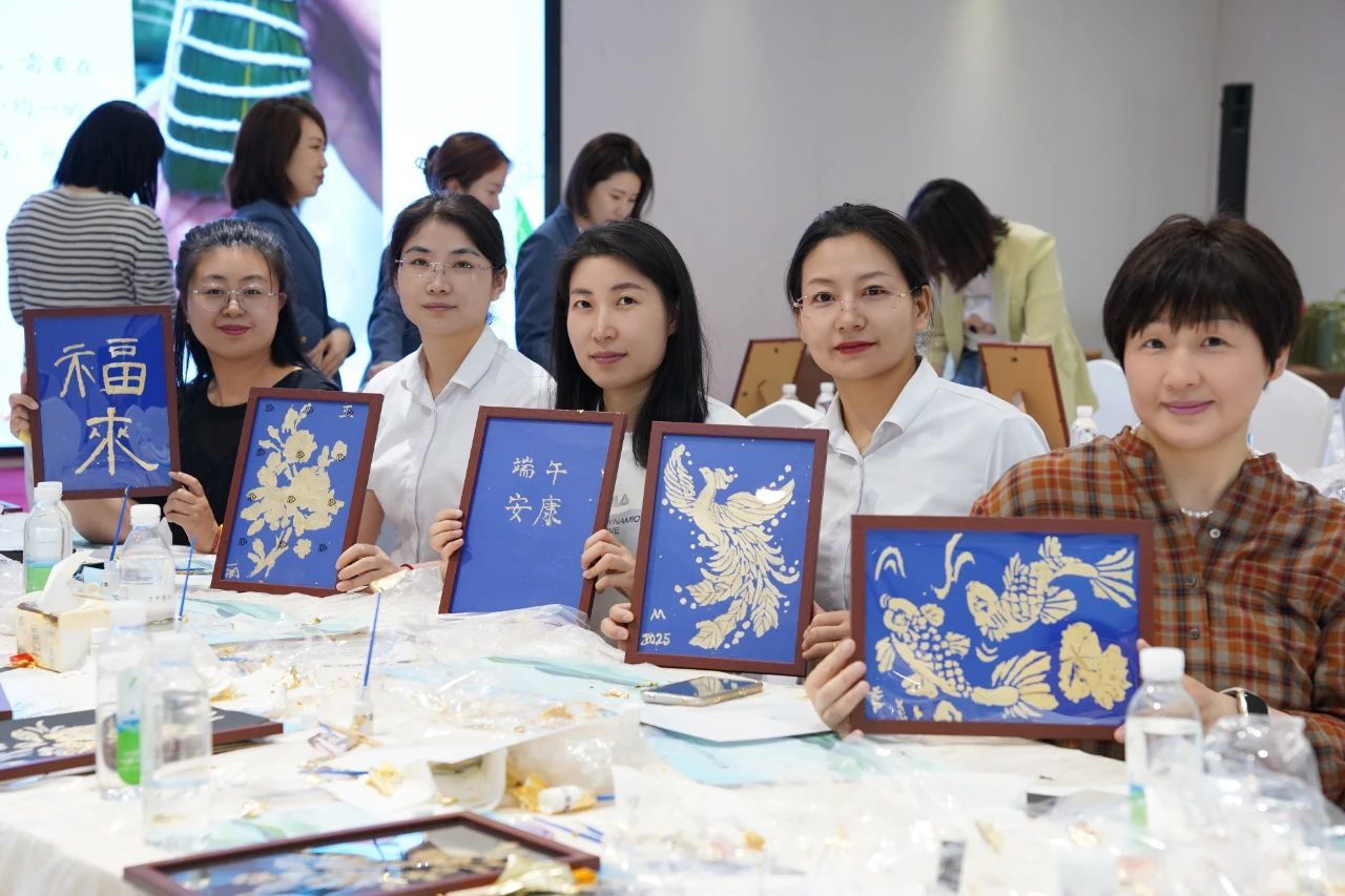 在金屬箔畫制作區(qū)域,參與者們仿佛變身成為藝術家。桌上擺放著色彩斑斕的金屬箔片、剪刀、膠水等工具。大家充分發(fā)揮自己的想象力,將一片片金屬箔片精心剪裁、拼接。有的以端午的標志性元素龍舟為主題,用金色的箔片勾勒出龍舟的輪廓,再用彩色箔片裝飾船身,活靈活現(xiàn);有的則選擇了粽子作為創(chuàng)作核心,將綠色的箔片捏成粽子的形狀,周圍配上代表艾葉的銀色葉片。這一活動不僅考驗了大家的手工技巧,更激發(fā)了大家對傳統(tǒng)文化的創(chuàng)新理解。