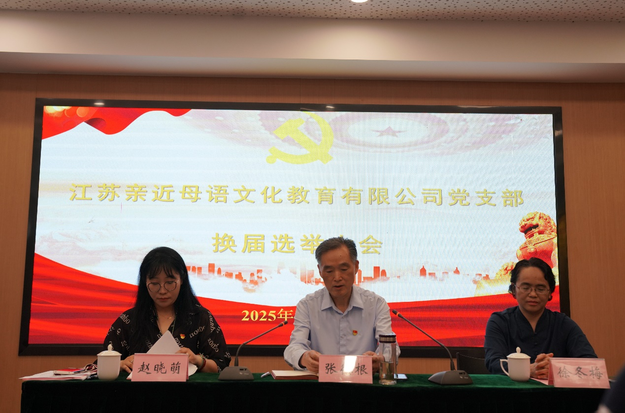 2025年6月11日,江蘇親近母語文化教育有限公司黨支部召開換屆選舉大會(huì),南京紫東國際創(chuàng)意園黨委專職副書記張德根出席本次會(huì)議。