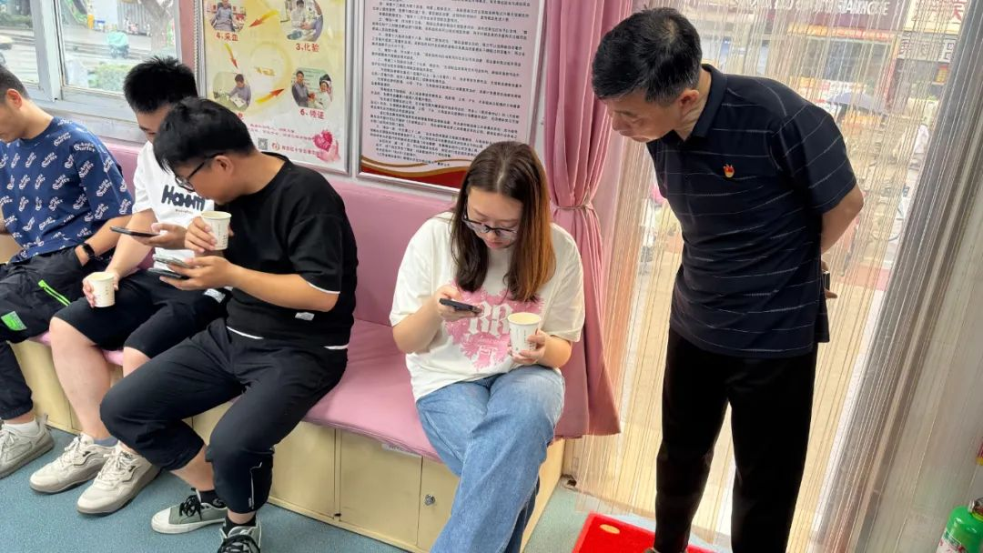 在獻(xiàn)血車上,醫(yī)護(hù)人員耐心地為大家講解注意事項(xiàng),登記信息、測量血壓、初篩檢測……整個(gè)流程井然有序。