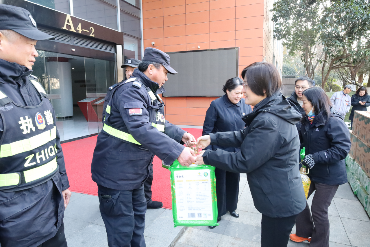 活動中,南京棲霞高新產(chǎn)業(yè)集團(tuán)有限公司副總經(jīng)理潘家燕慰問了嚴(yán)寒中辛勤工作的保潔、保安及工程維修人員,并親手送上滿載祝福的新春暖心禮包。她叮囑大家在履行職責(zé)、服務(wù)好園區(qū)企業(yè)與職工群眾的同時,務(wù)必注意防寒保暖與作業(yè)安全,以更加飽滿的熱情和昂揚(yáng)的斗志,為園區(qū)的高質(zhì)量發(fā)展筑牢基礎(chǔ)防線。