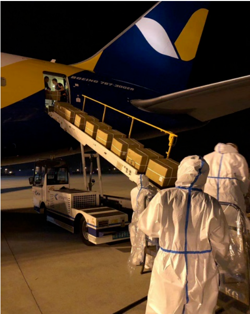 4月30日凌晨,兩架滿載著口罩、防護(hù)服、隔離衣等各類防疫物資共計5224箱,456立方的包機(jī)從南京出發(fā),飛往俄羅斯。飛機(jī)上這次防疫物資的供應(yīng)方,就是棲霞高新區(qū)企業(yè)——江蘇開元醫(yī)藥化工有限公司。
