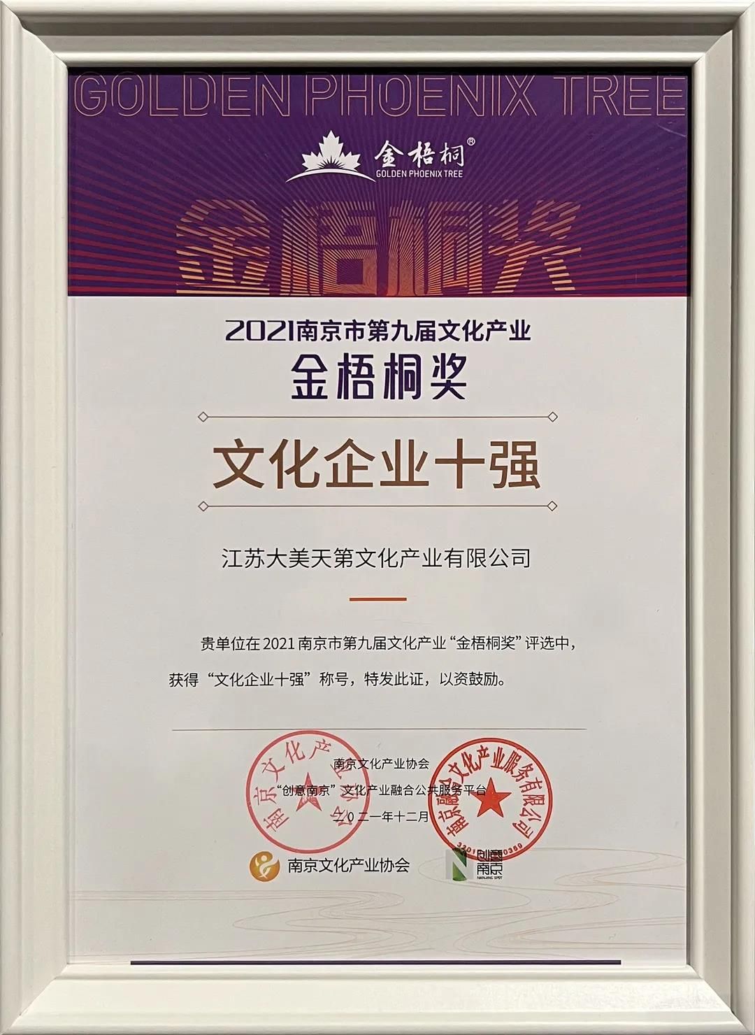 2021·南京市第九屆文化產(chǎn)業(yè)金梧桐獎“文化企業(yè)十強”,連續(xù)四年當選。
