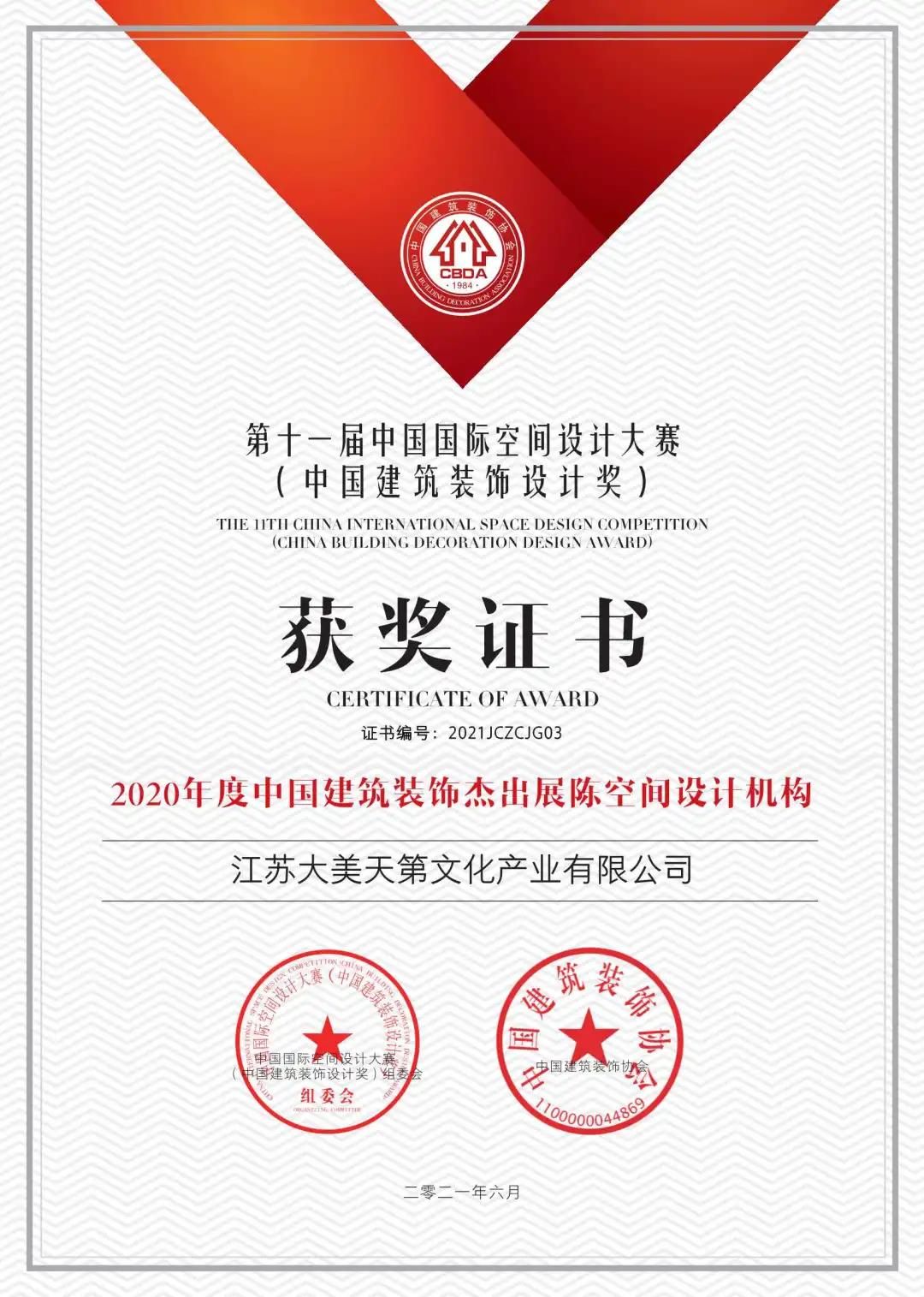 在大美天第十多載歷程中,深耕精筑文化領(lǐng)域,贏得了諸多國家、省、市多層級、全方位褒獎。2021年收官在即,大美天第本年度依舊碩果累累,以極大的美譽度、信任度贏得了行業(yè)和客戶的認可,品牌形象、品牌效應全力彰顯。