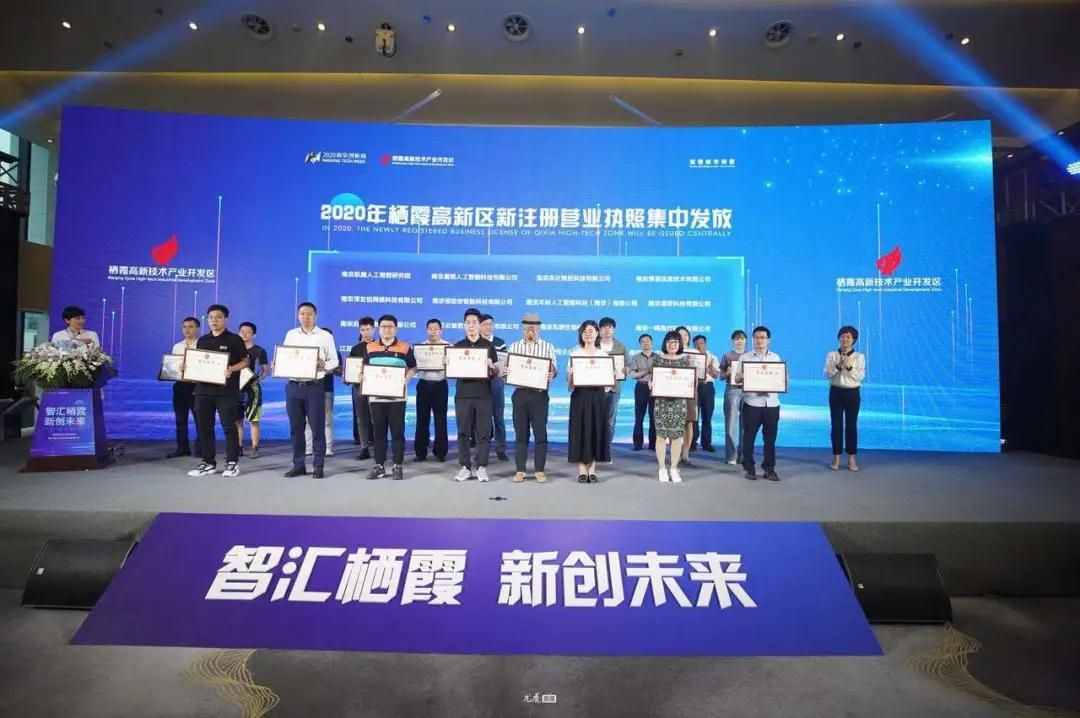 活動現(xiàn)場,棲霞區(qū)行政審批局局長孫曉華為新入駐棲霞高新區(qū)的17家企業(yè)代表頒發(fā)營業(yè)執(zhí)照。