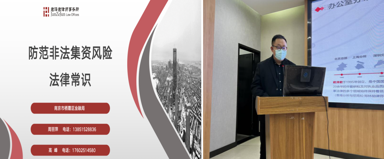 活動(dòng)邀請(qǐng)了北京市君澤君(南京)律師事務(wù)所、方正中期期貨有限公司南京分公司為園區(qū)企業(yè)進(jìn)行專(zhuān)業(yè)宣講。會(huì)上,君澤君律師事務(wù)所從非法集資法律視角出發(fā),通過(guò)法律條文解讀、案例展示,對(duì)企業(yè)在金融活動(dòng)中的法律合規(guī)性進(jìn)行了系統(tǒng)的介紹;方正中期期貨公司從企業(yè)股權(quán)投資、公募基金、私募基金等業(yè)務(wù)視角出發(fā),通過(guò)業(yè)務(wù)解讀、視頻、案例展示等途徑,深入淺出為企業(yè)展現(xiàn)非法集資在企業(yè)經(jīng)濟(jì)活動(dòng)中的表現(xiàn)形式,提醒企業(yè)做好相關(guān)風(fēng)險(xiǎn)規(guī)避。