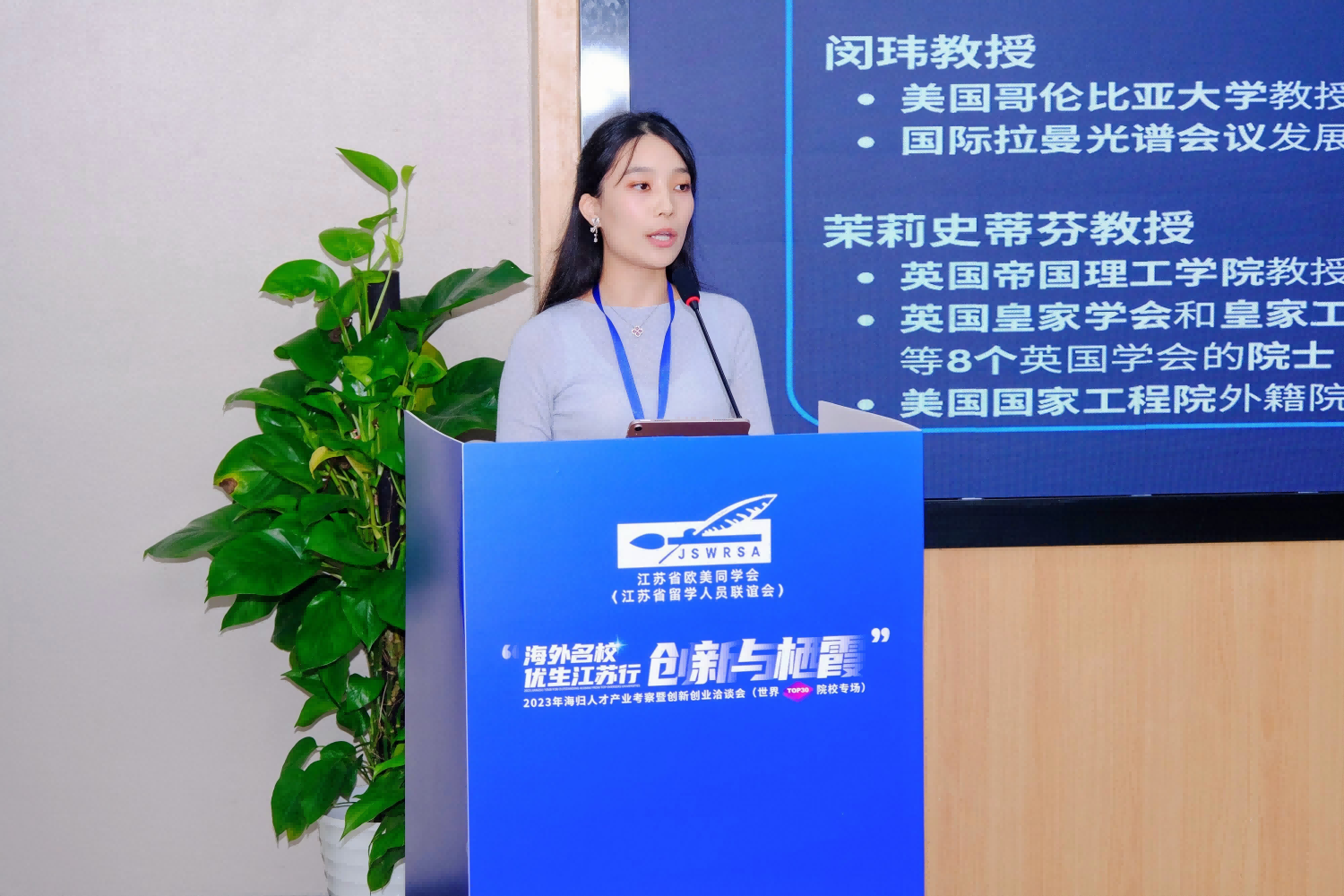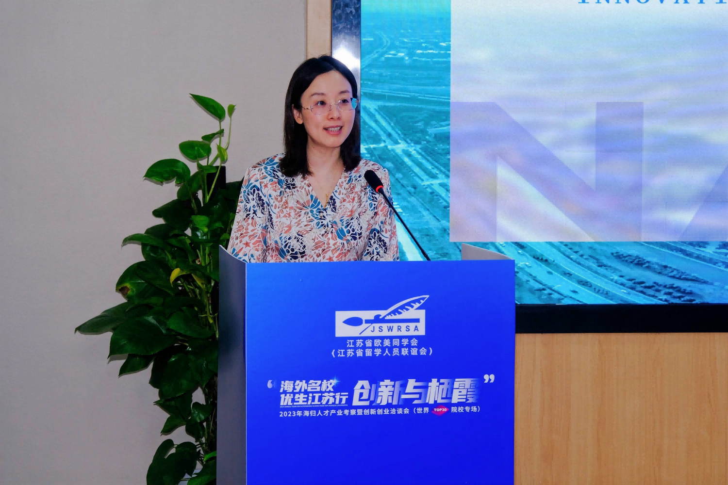 隨后,南京棲霞科技產業(yè)發(fā)展有限公司副總經理朱潔代表高新區(qū)介紹了區(qū)域發(fā)展、相關產業(yè)資源優(yōu)勢、政策支持等創(chuàng)新創(chuàng)業(yè)環(huán)境,并誠摯邀請各位海外英才扎根園區(qū),成就事業(yè)。