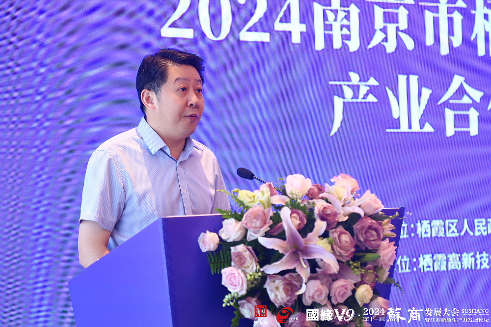 郭區(qū)長代表棲霞區(qū)政府對各位嘉賓的到來表示熱烈歡迎,對江蘇省蘇商發(fā)展促進會和各界人士長期以來對棲霞發(fā)展的支持表示衷心感謝。郭區(qū)長在致辭中向與會企業(yè)詳細介紹了棲霞區(qū)在經(jīng)濟、社會、文化和生態(tài)等多方面的發(fā)展優(yōu)勢。棲霞區(qū)作為南京生物醫(yī)藥產(chǎn)業(yè)的三個先導區(qū)之一,已形成仙林大學城、江蘇生命科技創(chuàng)新園、新港生物醫(yī)藥制造基地的“一城一園一基地”發(fā)展格局。作為全國百強區(qū),未來棲霞區(qū)將充分發(fā)揮自身的資源稟賦、產(chǎn)業(yè)基礎、科研條件,與全國蘇商企業(yè)家牽手,共同開創(chuàng)聯(lián)動發(fā)展的嶄新局面;與廣大生物醫(yī)藥企業(yè)合作,共同打造生物醫(yī)藥創(chuàng)新發(fā)展高地。