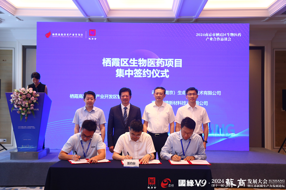 創(chuàng)新是引領發(fā)展的第一動力,企業(yè)是經(jīng)濟健康運行的源泉活水。會上,隆重舉行了棲霞區(qū)生物醫(yī)藥項目集中簽約儀式。棲霞高新技術產(chǎn)業(yè)開發(fā)區(qū)管委會主任黃斌與中石化碳產(chǎn)業(yè)科技股份有限公司、南京中科云帆生物技術有限公司、南京道潤醫(yī)學科技有限公司、動康(南京)生命科學技術有限公司、南京能德新材料技術有限公司等五家優(yōu)質(zhì)企業(yè)共同簽署了合作協(xié)議。王秘書長、丁處長、郭區(qū)長、楊區(qū)長見證簽約。此次簽約將為棲霞生物醫(yī)藥產(chǎn)業(yè)注入新的活水,激起新的發(fā)展浪潮。