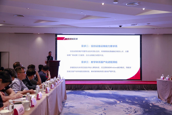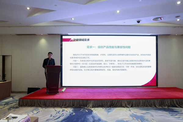 南京城市職業(yè)學(xué)院信創(chuàng)軟件產(chǎn)業(yè)學(xué)院負(fù)責(zé)人胡濱提出教育領(lǐng)域信創(chuàng)適配需求,江蘇省中醫(yī)院信息數(shù)據(jù)中心高級工程師彭遠(yuǎn)分享了衛(wèi)健領(lǐng)域數(shù)字化轉(zhuǎn)型的痛點與機(jī)遇。針對這些需求,江蘇省信創(chuàng)工委會教育組班振龍、醫(yī)療組金是暉分別帶來針對性的解決方案,從技術(shù)適配到生態(tài)共建提出創(chuàng)新思路。