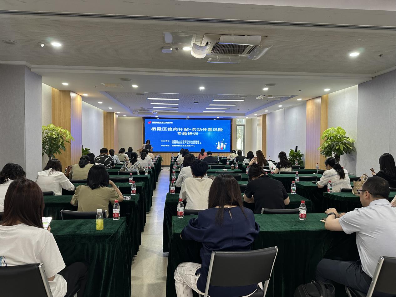 為助力企業(yè)紓困解難、提升勞動用工合規(guī)水平,5月28日,棲霞高新區(qū)聯合棲霞區(qū)人社局共同舉辦“穩(wěn)崗補貼+勞動仲裁風險專題培訓”活動。本次活動吸引了園區(qū)內40余家企業(yè)代表參與,現場氣氛熱烈。