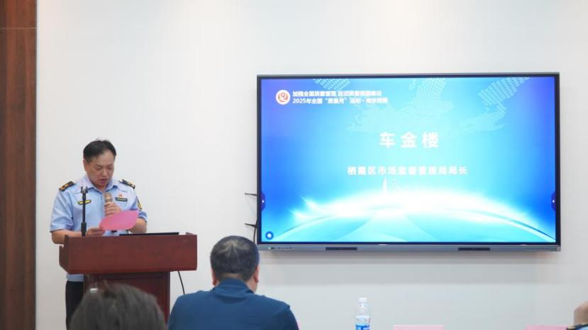 區(qū)市場監(jiān)管局黨組書記、局長車金樓現(xiàn)場部署2025年棲霞區(qū)“質(zhì)量月”活動實(shí)施方案,明確“五個(gè)聚焦”:聚焦決策部署落地,質(zhì)量引領(lǐng)效益提升;聚焦全面質(zhì)量管理,夯實(shí)產(chǎn)業(yè)競爭優(yōu)勢;聚焦質(zhì)量品牌培育,塑造棲霞金字招牌;聚焦監(jiān)管效能提升,營造放心消費(fèi)環(huán)境;聚焦全民質(zhì)量素養(yǎng),構(gòu)建社會共治格局。