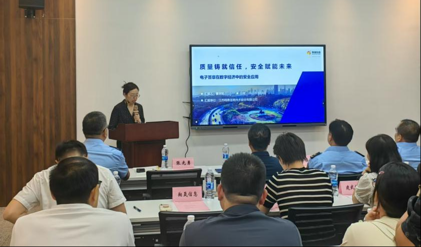 翔晟信息等企業(yè)先后登臺做經(jīng)驗(yàn)分享,圍繞質(zhì)量管理創(chuàng)新、質(zhì)量安全守護(hù)、質(zhì)量品牌培育等維度分享實(shí)踐案例,為現(xiàn)場嘉賓提供了質(zhì)量發(fā)展新思路。江蘇省質(zhì)量和標(biāo)準(zhǔn)化研究院國檢中心作《物聯(lián)網(wǎng)產(chǎn)品檢驗(yàn)檢測與標(biāo)準(zhǔn)化技術(shù)交流》主題宣講,為物聯(lián)網(wǎng)企業(yè)“把脈”標(biāo)準(zhǔn)需求,提醒企業(yè)“標(biāo)準(zhǔn)先行”才能“質(zhì)量穩(wěn)行”。天圭認(rèn)證圍繞“小微質(zhì)量認(rèn)證提升”進(jìn)行專題授課,系統(tǒng)解析認(rèn)證要點(diǎn),為后續(xù)入企走訪幫扶奠定技術(shù)基礎(chǔ)。
