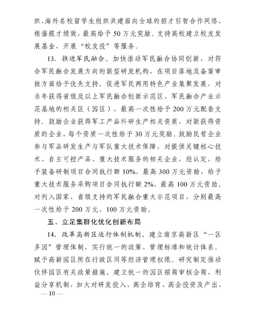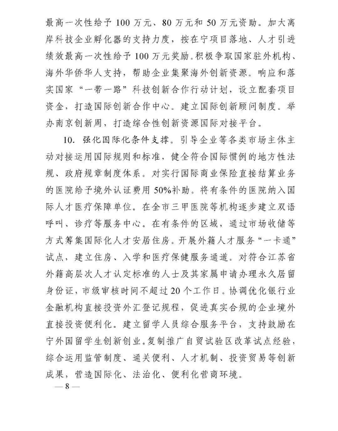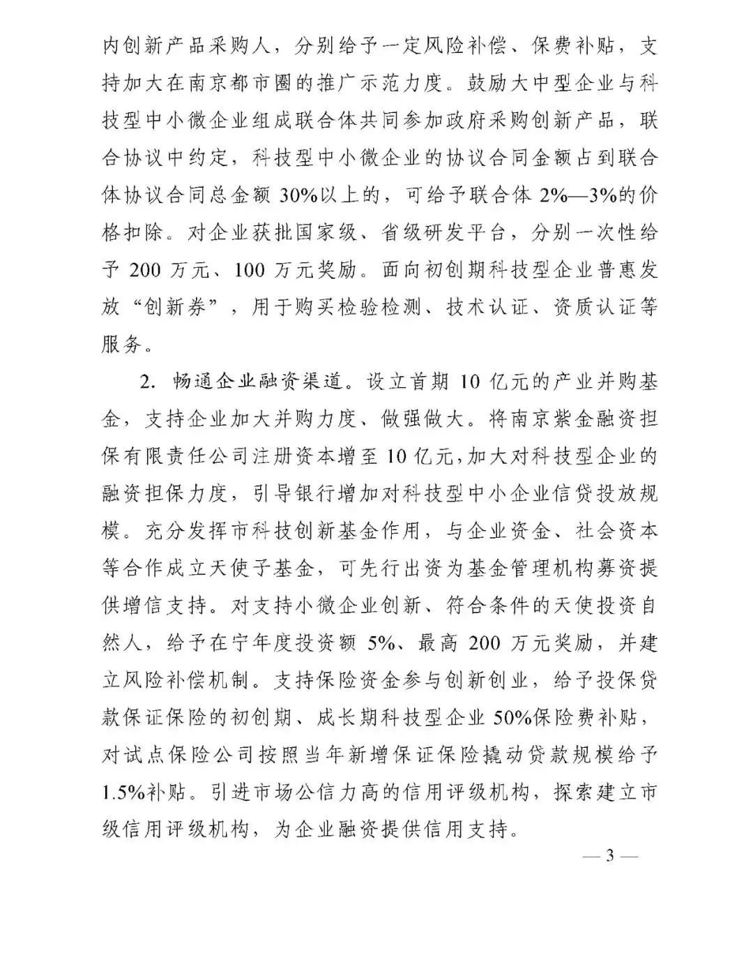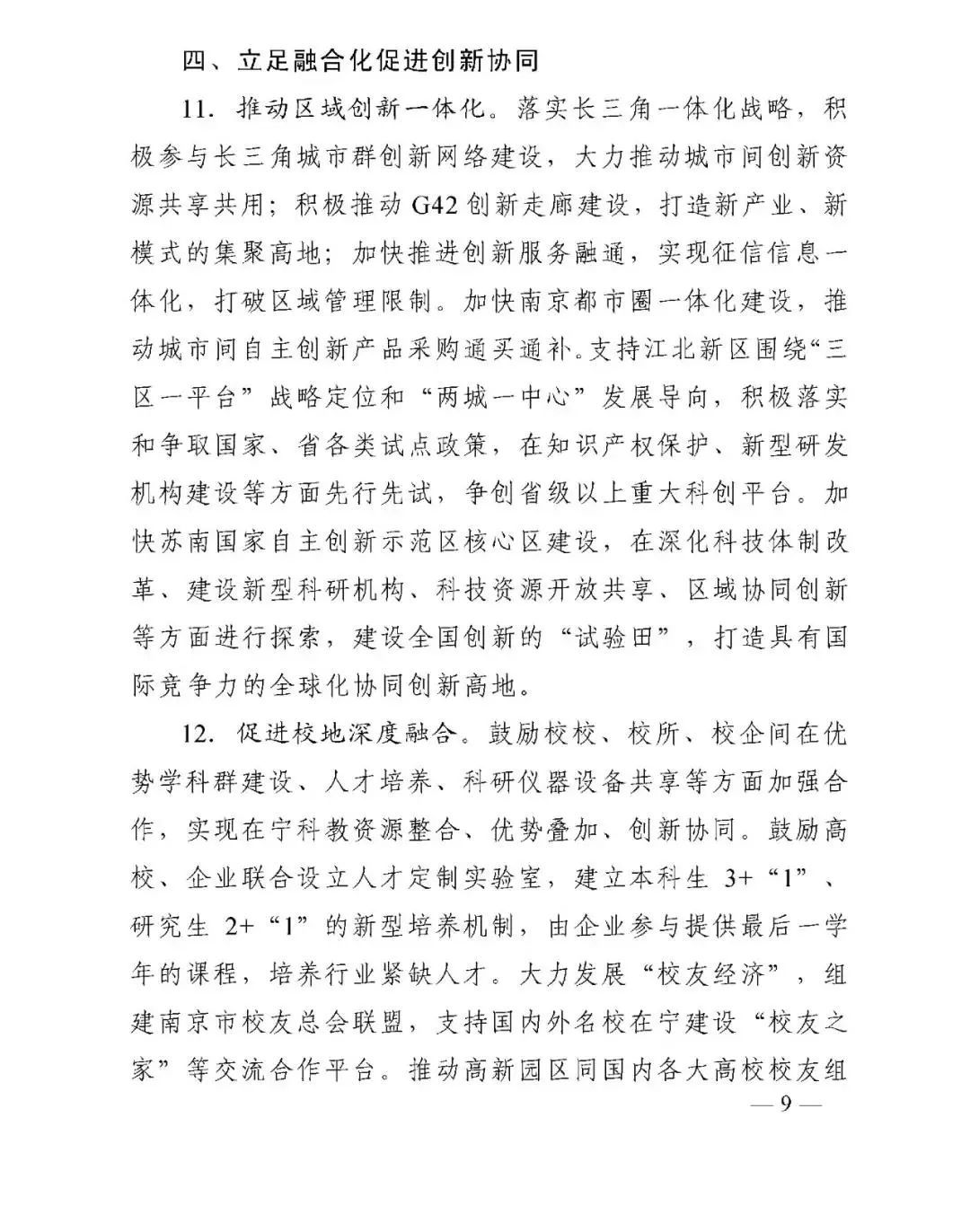 其中包括:南京要打造“科創(chuàng)企業(yè)森林”,面向初創(chuàng)期科技型企業(yè)普惠發(fā)放“創(chuàng)新券”;暢通企業(yè)融資渠道,設(shè)立首期10億元的產(chǎn)業(yè)并購基金,支持企業(yè)加大并購力度、做強做大;加大對“中間類”人才的支持力度;將企業(yè)博士的安居租賃補貼提升至每月2000元;試行“先租后售、租購并舉”的安居方式,對于具備一定條件的人才安居住房,人才承租滿五年可申請購買;進一步完善柔性引才制度;打造城市“硅巷”等重量級內(nèi)容。