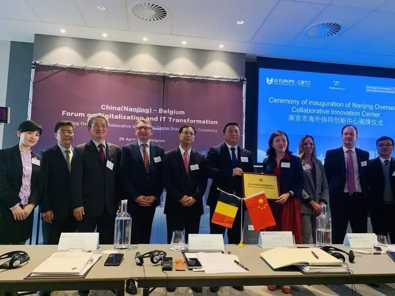 在中、比兩方參會嘉賓的見證下,棲霞高新區(qū)管委會主任吳丹和比利時CBTC總經(jīng)理張敏容共同為南京海外協(xié)同創(chuàng)新中心揭牌。并正式宣布“中國南京創(chuàng)新周”德、英、法三語外文網(wǎng)站正式開通。