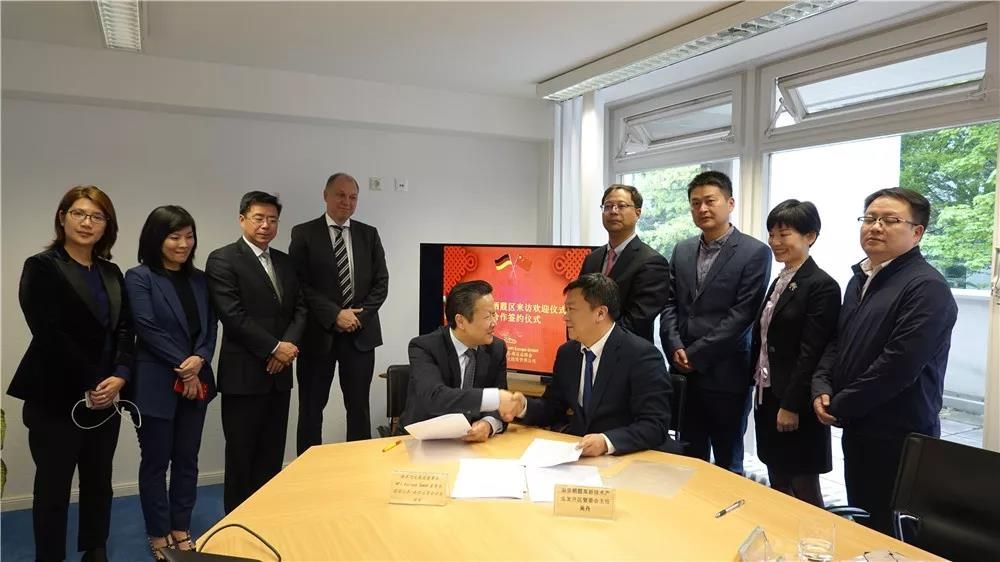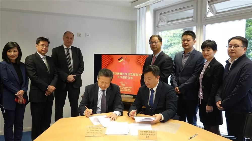 最后,在與會嘉賓的見證下,棲霞高新區(qū)主任吳丹先生和與HFI Europe GmbH董事長侯軍先生簽署了“南京歐洲(德國)海外協(xié)同創(chuàng)新中心合作協(xié)議”、“中德科技交流轉(zhuǎn)化中心框架合作協(xié)議”和“江蘇中德服貿(mào)產(chǎn)業(yè)合作基金戰(zhàn)略合作協(xié)議”。棲霞區(qū)將牽頭推動南京海外協(xié)同創(chuàng)新中心在FI Europe GmbH掛牌設(shè)立,搭建起中德科技、文化等多領(lǐng)域的交流平臺。