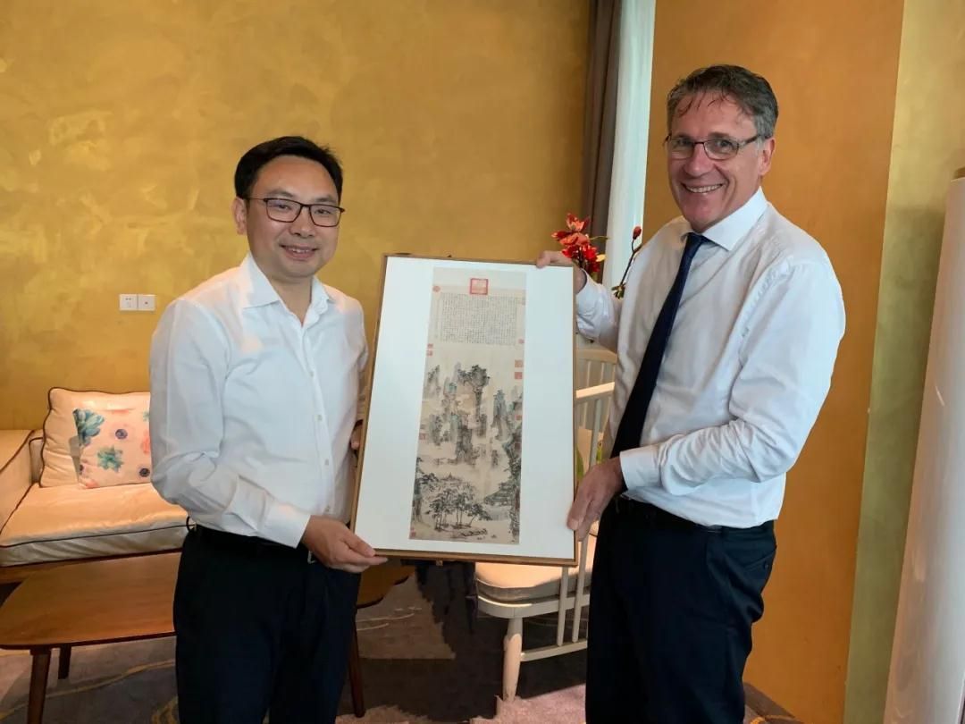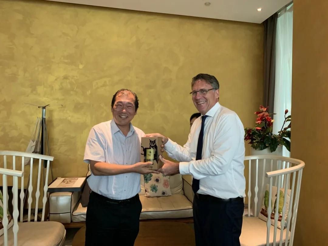 會后,棲霞區(qū)委副書記尹軍、副區(qū)長王智代表棲霞與菲利普先生互贈禮品,并互相表達(dá)了對建立長期友好合作關(guān)系的期許。