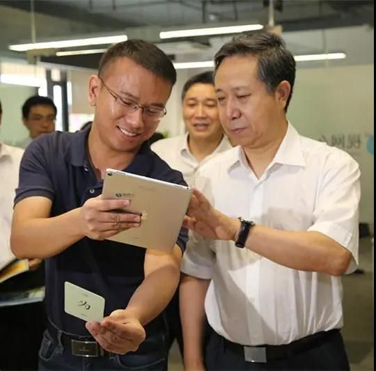 督查組一行參觀了空間內(nèi)2家企業(yè),并與企業(yè)人員進行了親切交談,關切地詢問了他們在園區(qū)發(fā)展中的情況。南京視網(wǎng)么信息科技有限公司CEO張帥向王部長展示了他們的AR技術最新產(chǎn)品《漢字書局·字源卡》,該產(chǎn)品將增強現(xiàn)實技術和傳統(tǒng)漢字文化相結合,讓漢字的演變歷程“活”了起來,受到廣大青少年的喜愛。