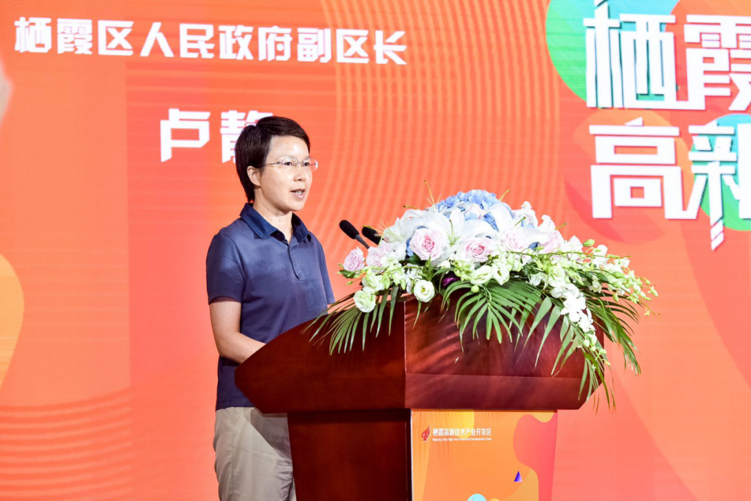 棲霞區(qū)副區(qū)長盧靜在致辭中感謝各位領導和嘉賓的到來,并誠邀各行業(yè)優(yōu)秀服務機構,與高新區(qū)攜手實現(xiàn)供需精準對接,助力企業(yè)飛躍。