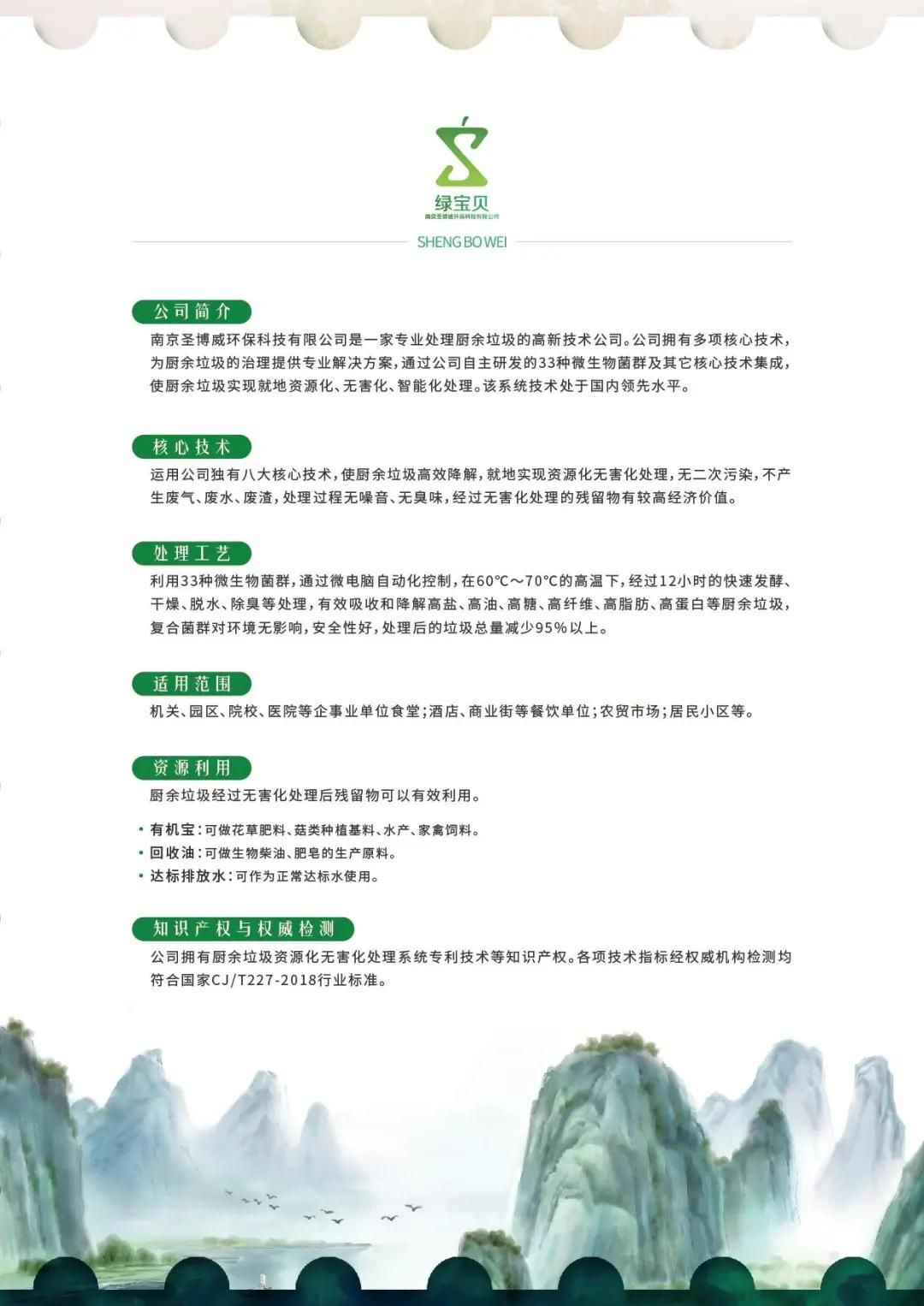 圣博威是一家專業(yè)處理廚余垃圾的科技型企業(yè),通過自主研發(fā)的33種微生物菌群及其它核心技術(shù),可使廚余垃圾實(shí)現(xiàn)就地資源化、無害化、智能化處理。該公司擁有多項(xiàng)專利技術(shù),各項(xiàng)指標(biāo)均符合國家CJ/T227-2018行業(yè)標(biāo)準(zhǔn)。目前,“綠寶貝”已在高新區(qū)紫東創(chuàng)意園建立首個(gè)示范點(diǎn),累計(jì)處理廚余垃圾近一噸,圣博威將以“綠寶貝”為開端,不斷加強(qiáng)研發(fā),力爭成為“廚余垃圾資源化無害化專家”。