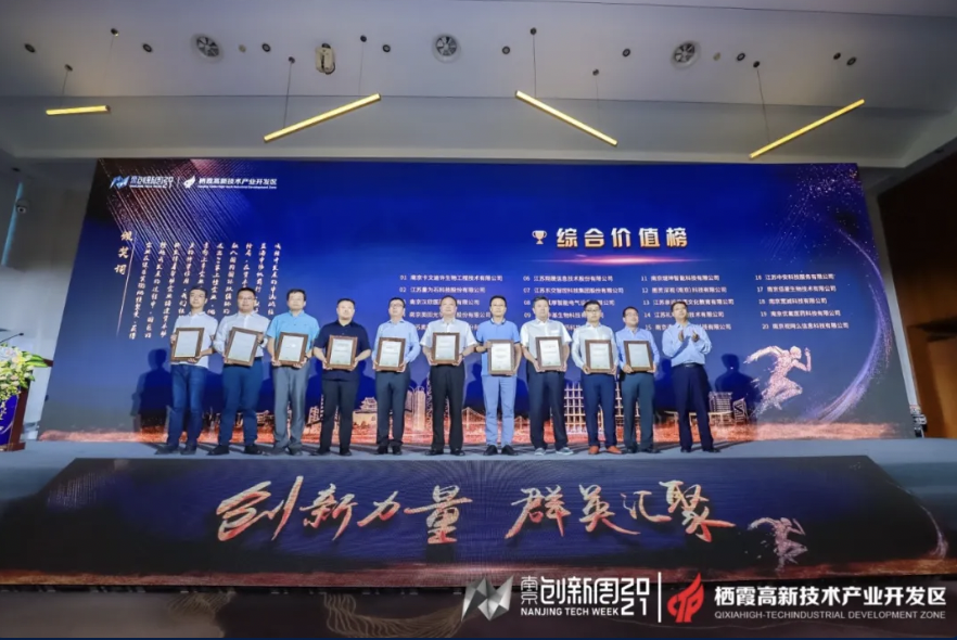 棲霞區(qū)人民政府副區(qū)長(zhǎng)盧靜為新醫(yī)藥與生命健康產(chǎn)業(yè)榜單獲獎(jiǎng)企業(yè)代表頒獎(jiǎng)。