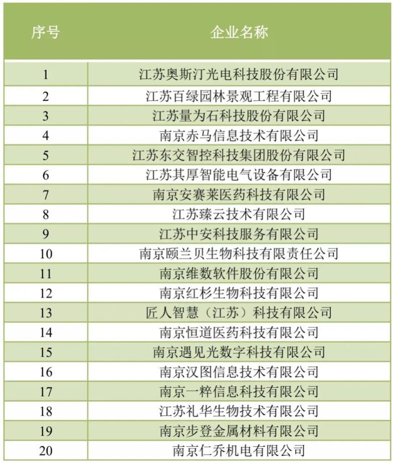 2020年,園區(qū)榮獲“南京市專(zhuān)利導(dǎo)航試驗(yàn)區(qū)”稱(chēng)號(hào),為鼓勵(lì)企業(yè)在發(fā)明專(zhuān)利授權(quán)、PCT授權(quán)及企業(yè)技術(shù)合同開(kāi)發(fā)等方面持續(xù)探索,遴選出20家上榜企業(yè)。
