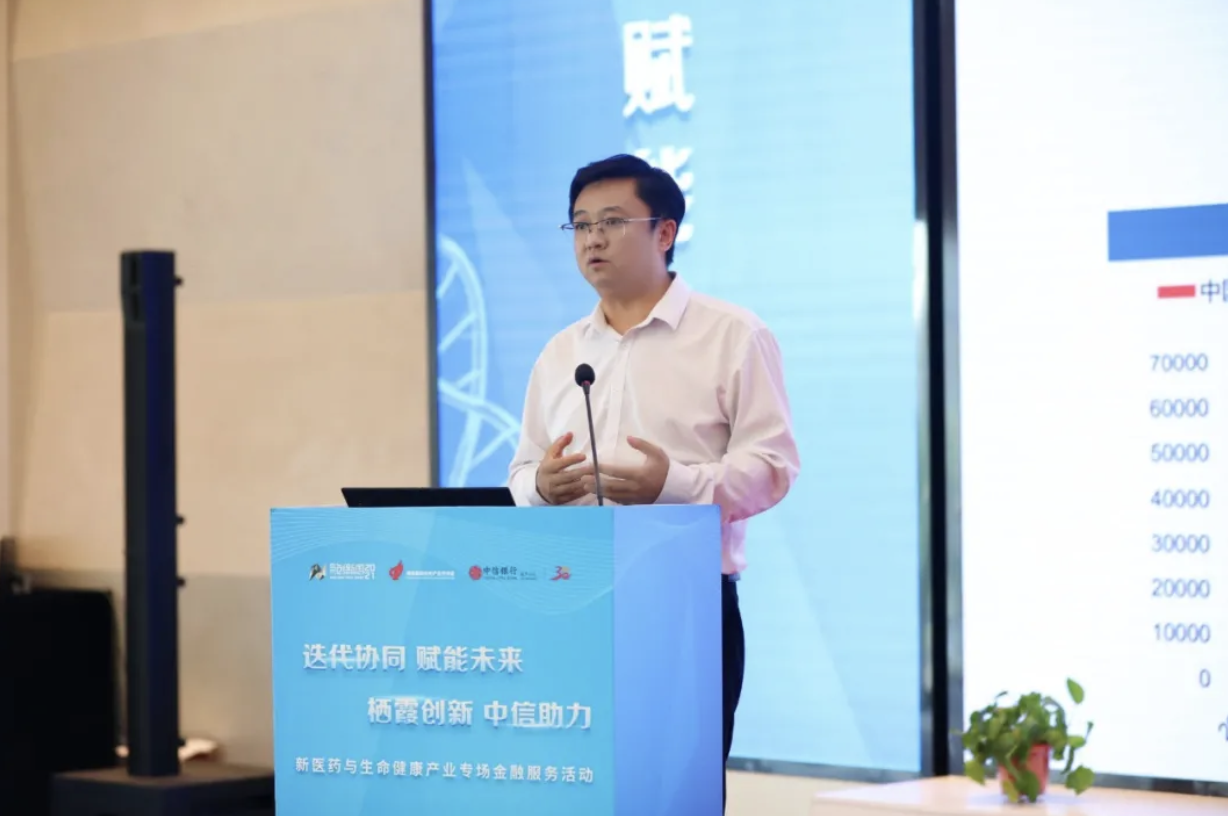 路演結(jié)束后,中信銀行戰(zhàn)略客戶部業(yè)務(wù)管理處處長(zhǎng)孫健博士趁熱打鐵,對(duì)企業(yè)進(jìn)行“新醫(yī)藥與生命健康產(chǎn)業(yè)趨勢(shì)及金融解決方案”介紹,點(diǎn)明了未來(lái)新醫(yī)藥與生命健康產(chǎn)業(yè)發(fā)展方向和市場(chǎng)產(chǎn)品熱點(diǎn),為企業(yè)謀求更高層次的發(fā)展模式注入新動(dòng)能。