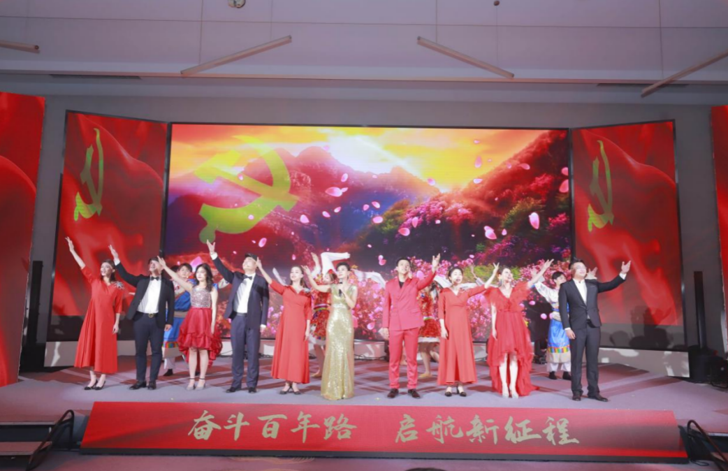 回首百年風(fēng)華,無(wú)私奉獻(xiàn)、頑強(qiáng)拼搏的革命先輩被深深銘記;奮進(jìn)新時(shí)代,迎難而上、奮勇?tīng)?zhēng)先的薪火傳人不斷涌現(xiàn)。“唱支山歌給黨聽(tīng),我把黨來(lái)比母親......”本次大會(huì)還進(jìn)行了文藝匯演,涵蓋歌舞《唱支山歌給黨聽(tīng)》,紅歌聯(lián)唱《毛委員和我們?cè)谝黄稹贰ⅰ督鹚筱y梭》、《贊贊新時(shí)代》,朗誦《初心與使命》,歌伴舞《錦繡前程》等節(jié)目,熱情謳歌中國(guó)共產(chǎn)黨的豐功偉績(jī),由衷地表達(dá)對(duì)黨的深情祝福,營(yíng)造了“黨的盛典,人民的節(jié)日”的濃厚氛圍。