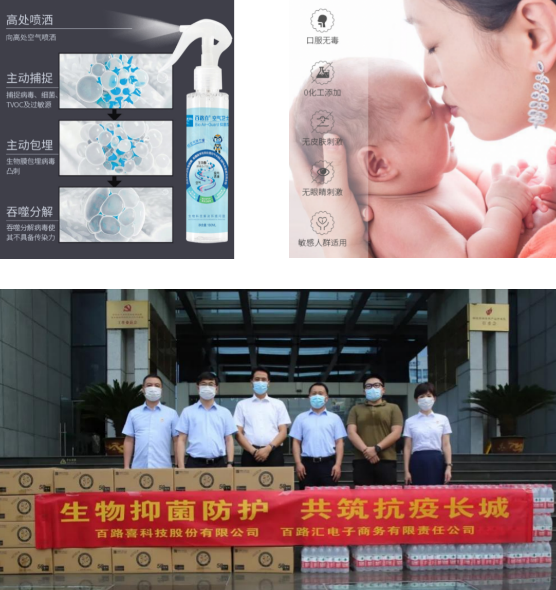 百路喜科技股份有限公司是一家致力于生物酶技術(shù)研發(fā)和應(yīng)用的科技型公司,公司創(chuàng)造性地把生物技術(shù)應(yīng)用到了醫(yī)療健康、能源環(huán)保等領(lǐng)域。根據(jù)中國科學(xué)院武漢病毒研究所檢測報(bào)告,公司產(chǎn)品百路喜空氣衛(wèi)士抑菌劑對新型冠狀病毒的滅活率達(dá)99.76%。在本輪疫情期間,百路喜科技股份有限公司向棲霞高新區(qū)捐贈(zèng)了數(shù)十箱百路喜空氣衛(wèi)士抑菌劑,為棲霞高新區(qū)的疫情防控提供了有力支持。