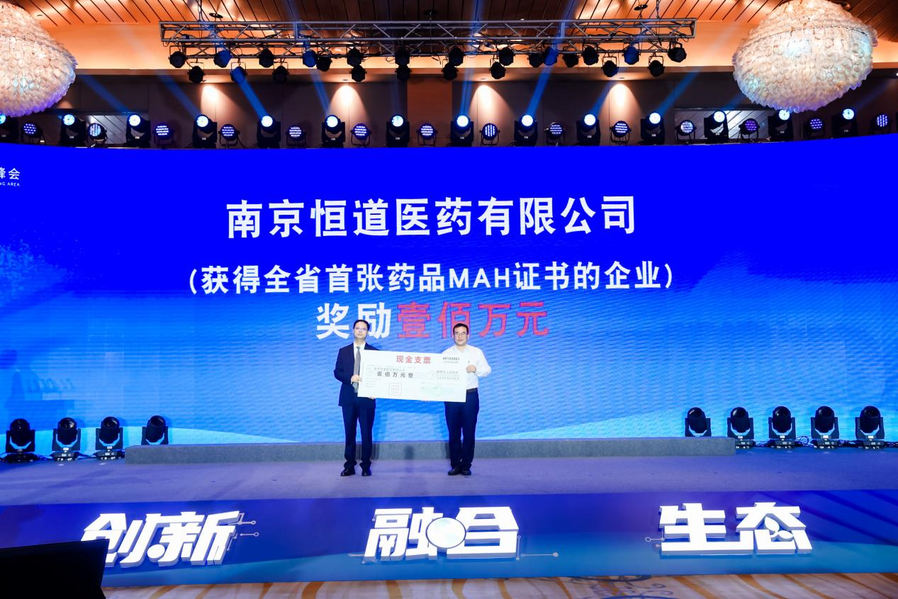 棲霞高新區(qū)生命科技創(chuàng)新園企業(yè),南京恒道醫(yī)藥有限公司,專注于“MAH平臺+項目+技術創(chuàng)新和轉(zhuǎn)讓”的落地應用,獲批全省首張MAH持有人藥品注冊批件,符合政策第九條的兌現(xiàn)規(guī)定。活動現(xiàn)場,王生向恒道醫(yī)藥發(fā)放首筆政策扶持資金100萬元,充分表明了棲霞區(qū)對產(chǎn)業(yè)支持的決心和誠心。