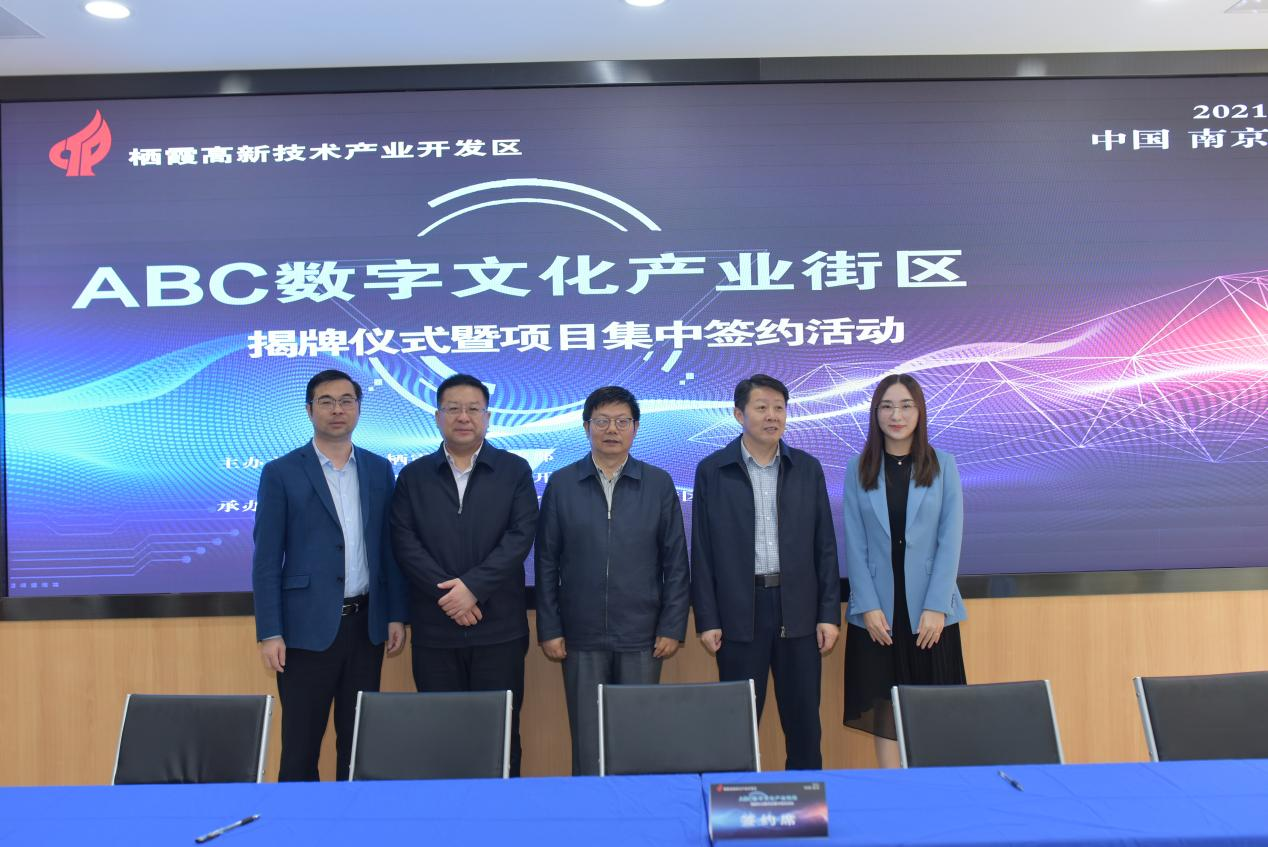 把握數(shù)字文化產(chǎn)業(yè)新機(jī)遇,開啟創(chuàng)新融合發(fā)展新征程,11月19日上午,棲霞區(qū)委宣傳部、棲霞高新技術(shù)產(chǎn)業(yè)開發(fā)區(qū)聯(lián)合南京棲創(chuàng)孵化加速器管理有限公司在棲霞高新區(qū)紫東國際創(chuàng)意園舉辦“ABC數(shù)字文化產(chǎn)業(yè)街區(qū)”揭牌儀式暨項(xiàng)目集中簽約活動(dòng)。