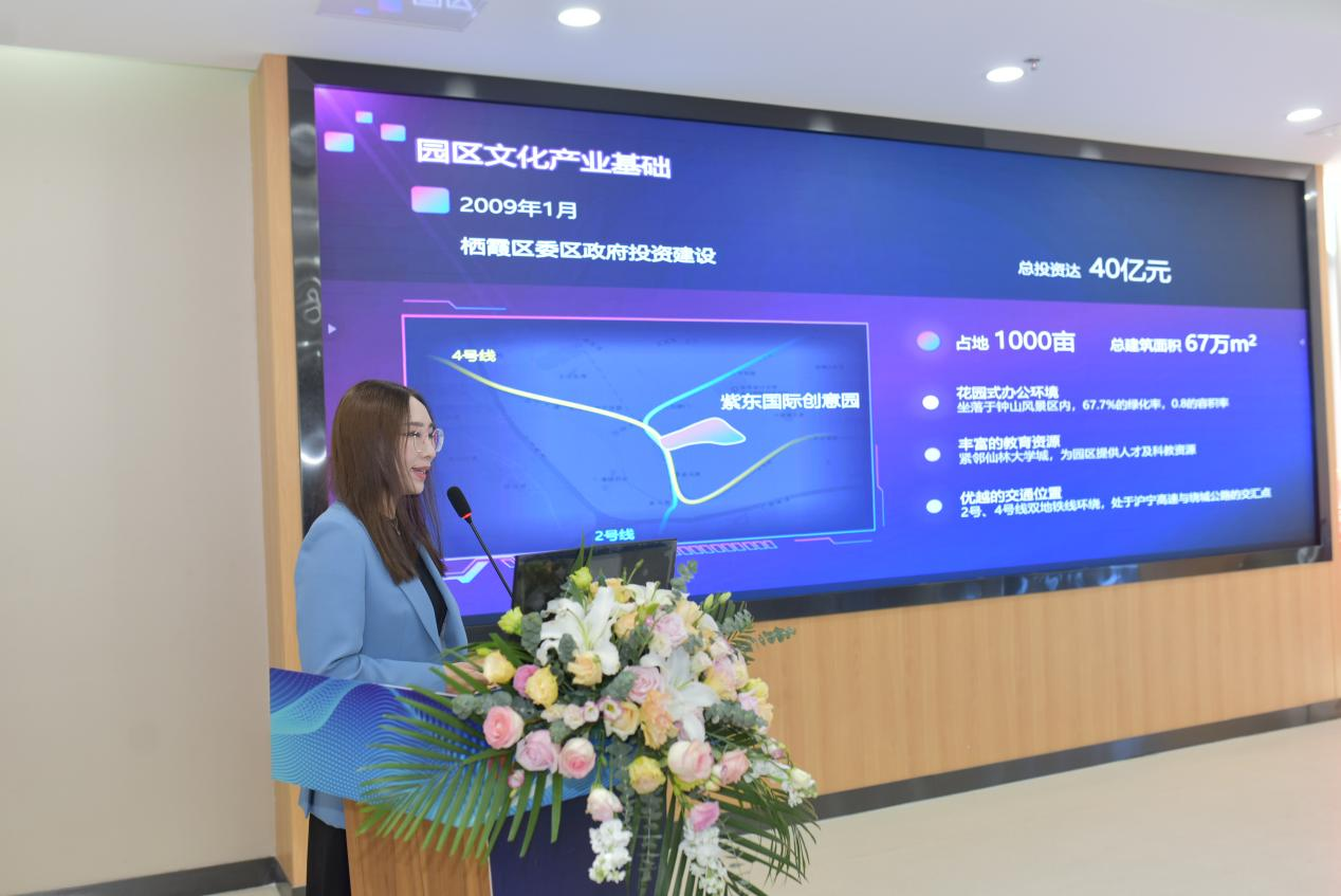 棲霞區(qū)委宣傳部副部長(zhǎng)鐘漫江為與會(huì)嘉賓重點(diǎn)介紹了棲霞區(qū)文化產(chǎn)業(yè)的發(fā)展歷程。她表示,“十三五”以來,棲霞致力打造“美好生活在棲霞”的地區(qū)名片,努力創(chuàng)造“創(chuàng)業(yè)發(fā)展在棲霞”的發(fā)展模式,大力營(yíng)造“創(chuàng)意創(chuàng)新在棲霞”的良好生態(tài),依托得天獨(dú)厚的地理環(huán)境優(yōu)勢(shì)、產(chǎn)業(yè)優(yōu)勢(shì)和科教優(yōu)勢(shì),助推文化產(chǎn)業(yè)蓬勃發(fā)展。