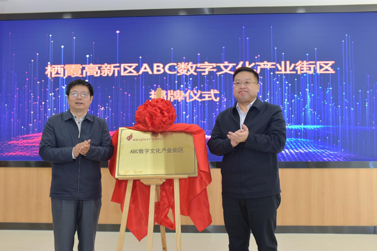 隨后,市委宣傳部常務(wù)副部長(zhǎng)紀(jì)增龍,棲霞區(qū)委常委、宣傳部部長(zhǎng)袁文峰共同為“ABC數(shù)字文化產(chǎn)業(yè)街區(qū)”揭牌。