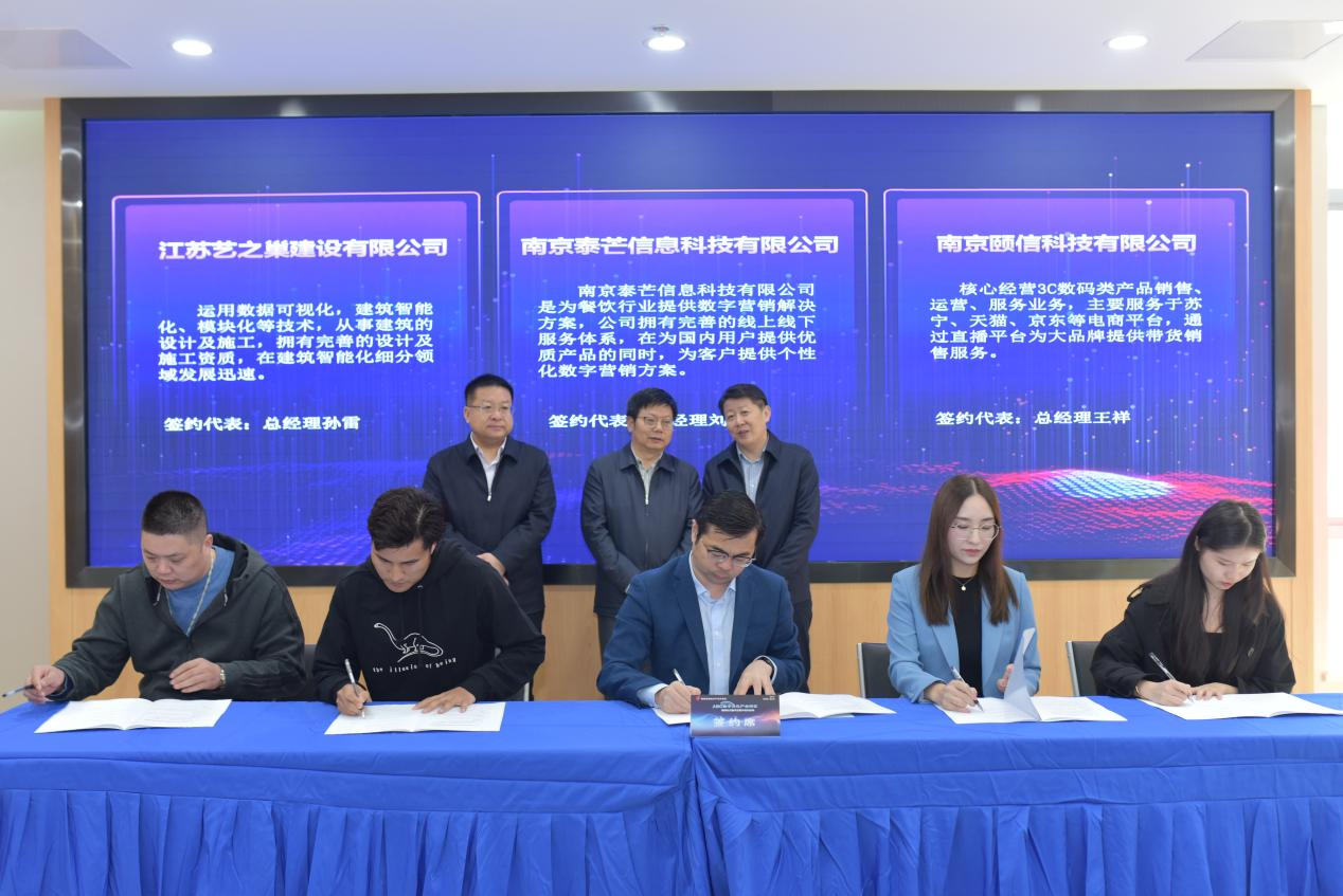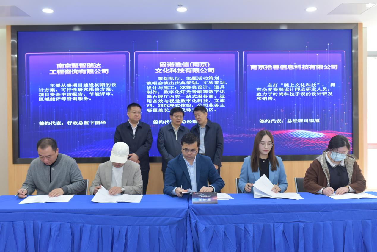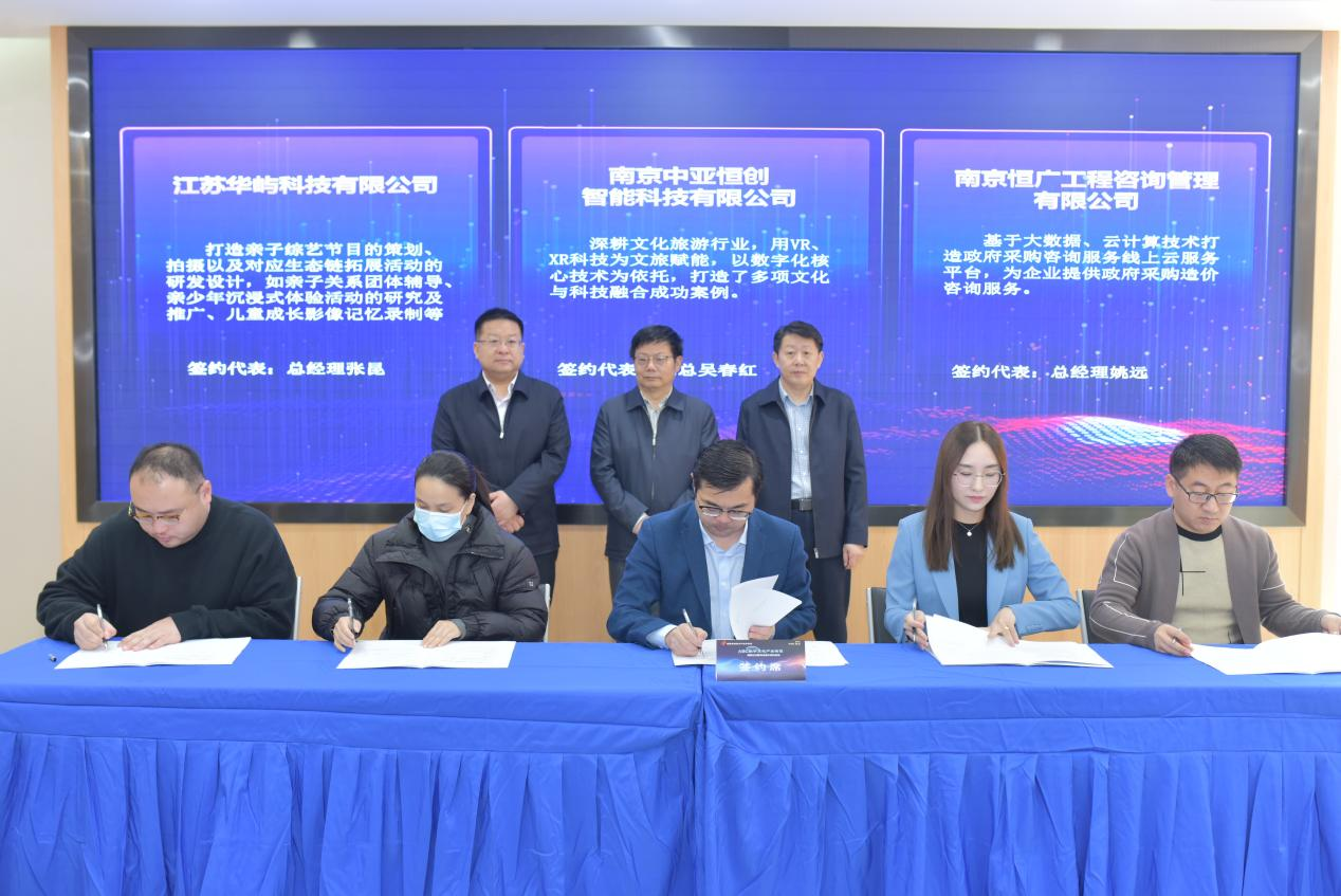 揭牌儀式后,棲霞高新區(qū)工委常務(wù)副書記黃斌、棲霞高新區(qū)ABC數(shù)字文化產(chǎn)業(yè)街區(qū)總經(jīng)理王友雙,與首批簽約的15家總投資4.06億元的優(yōu)質(zhì)文化企業(yè)代表,現(xiàn)場(chǎng)簽訂入駐協(xié)議。紀(jì)增龍、郭昌標(biāo)、袁文峰等領(lǐng)導(dǎo)共同見證。