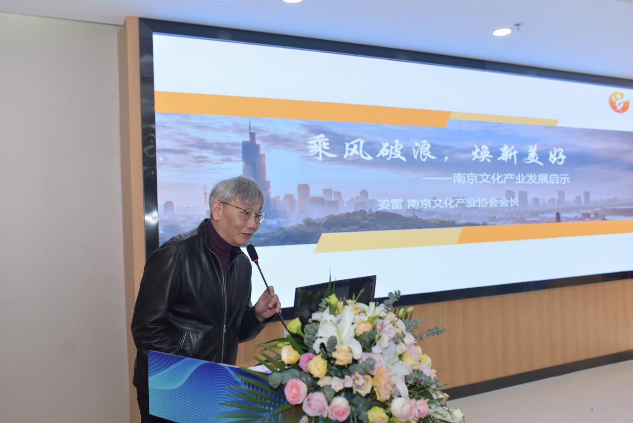 最后,南京文化產(chǎn)業(yè)協(xié)會(huì)會(huì)長(zhǎng)姜雷與現(xiàn)場(chǎng)嘉賓分享了“南京市數(shù)字文化產(chǎn)業(yè)分析報(bào)告”。姜雷對(duì)棲霞文化產(chǎn)業(yè)發(fā)展提出了三點(diǎn)建議。一是挖掘新資源打造新場(chǎng)景,二是運(yùn)用新技術(shù)打造新體驗(yàn),三是跨界新融合創(chuàng)造新模式。