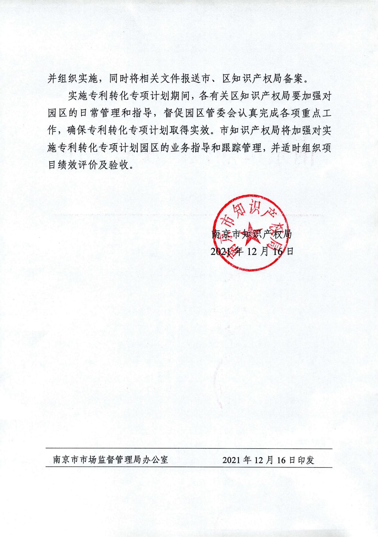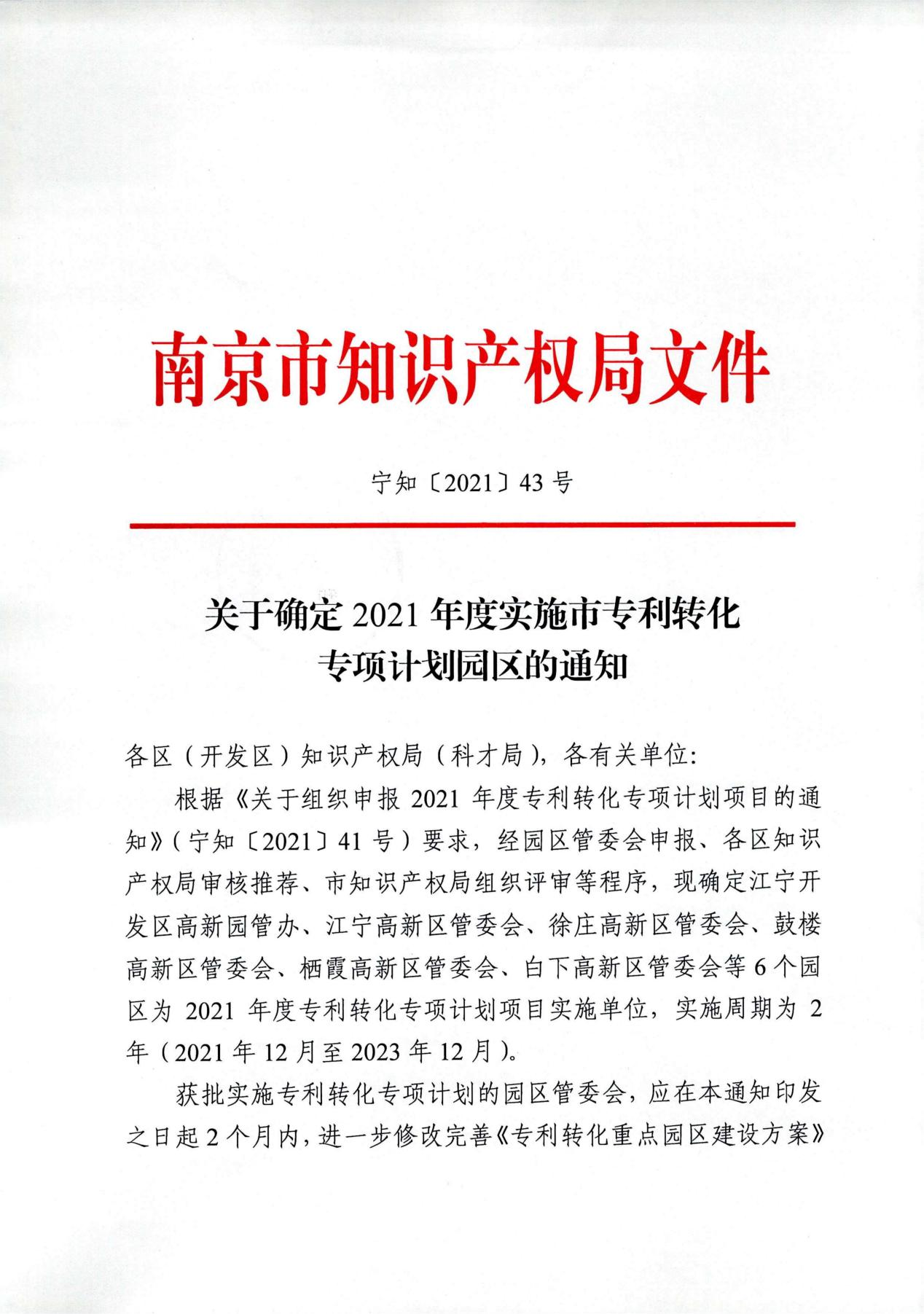 12月16日,南京市知識產(chǎn)權(quán)局發(fā)布了《關(guān)于確定2021年度實施市專利轉(zhuǎn)化專項計劃園區(qū)的通知》(寧知〔2021〕43號),確定2021年度南京市專利轉(zhuǎn)化專項計劃項目6家實施單位,南京棲霞高新技術(shù)產(chǎn)業(yè)開發(fā)區(qū)管理委員會榜上有名。