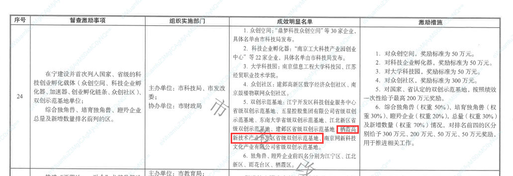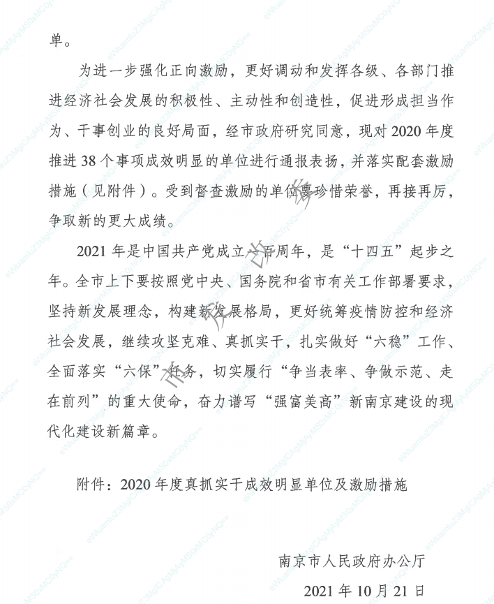 今年,南京市政府辦公廳發(fā)布了《關(guān)于對(duì)2020年度真抓實(shí)干成效明顯單位予以督查激勵(lì)的通報(bào)》,對(duì)2020年度推進(jìn)38個(gè)事項(xiàng)成效明顯的單位進(jìn)行通報(bào)表?yè)P(yáng),并落實(shí)配套激勵(lì)措施,棲霞高新技術(shù)產(chǎn)業(yè)開發(fā)區(qū)省級(jí)雙創(chuàng)示范基地被列入成效明顯名單。