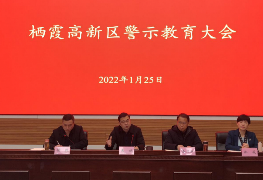 1月25日,棲霞高新區(qū)召開警示教育大會,高新區(qū)領(lǐng)導(dǎo)班子,各部門、直屬公司全體中層干部,以及春節(jié)期間下沉社區(qū)值班同志參加會議。黨工委常務(wù)副書記黃斌講話,紀(jì)工委書記顧戟主持會議。