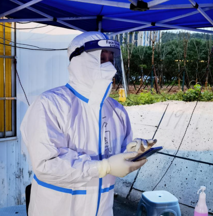 接到四橋卡口突擊隊(duì)的組建通知后,繆凱第一時(shí)間報(bào)了名,義無反顧地迎著困難和危險(xiǎn)投入到這場沒有硝煙的戰(zhàn)爭。“我們每天需要面對來自全國各地的駕乘人員,指導(dǎo)他們登記信息,以便于在進(jìn)入南京后能及時(shí)掌握他們的流動情況”,30多度的天氣脫下防護(hù)服,他們渾身找不到一塊干的地方。深夜里,當(dāng)大家都進(jìn)入夢鄉(xiāng)時(shí),他們依然是防疫一線的前行者,是南京城的守城人。