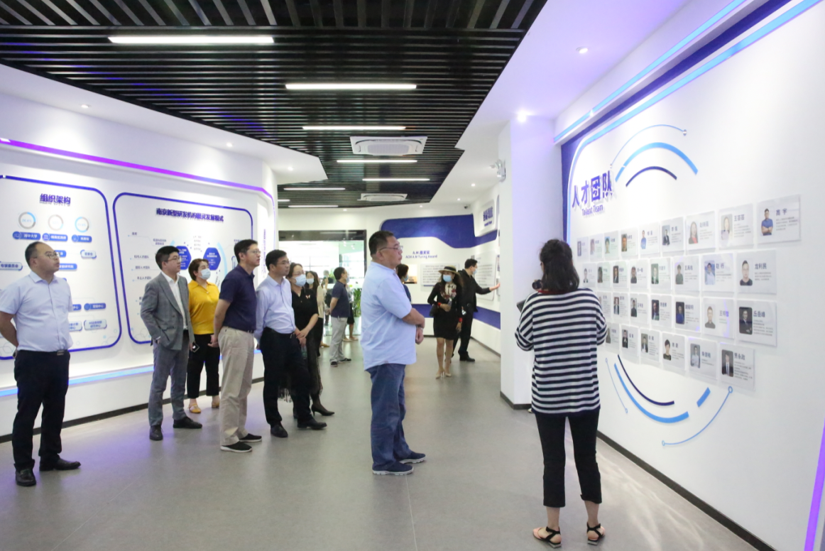 調(diào)研團(tuán)參觀了圖靈人工智能研究院展示館,重點(diǎn)聽取了燧坤智能科技、微生物科技、深度交叉科技、深??萍嫉确趸?xiàng)目匯報(bào),并與研發(fā)團(tuán)隊(duì)進(jìn)行了深入溝通和交流。調(diào)研團(tuán)表示,期待研究院能夠集聚更多高層次創(chuàng)新人才,孵化落地更多高質(zhì)量產(chǎn)業(yè)項(xiàng)目,成為江蘇省、南京市人工智能產(chǎn)業(yè)“高地”。