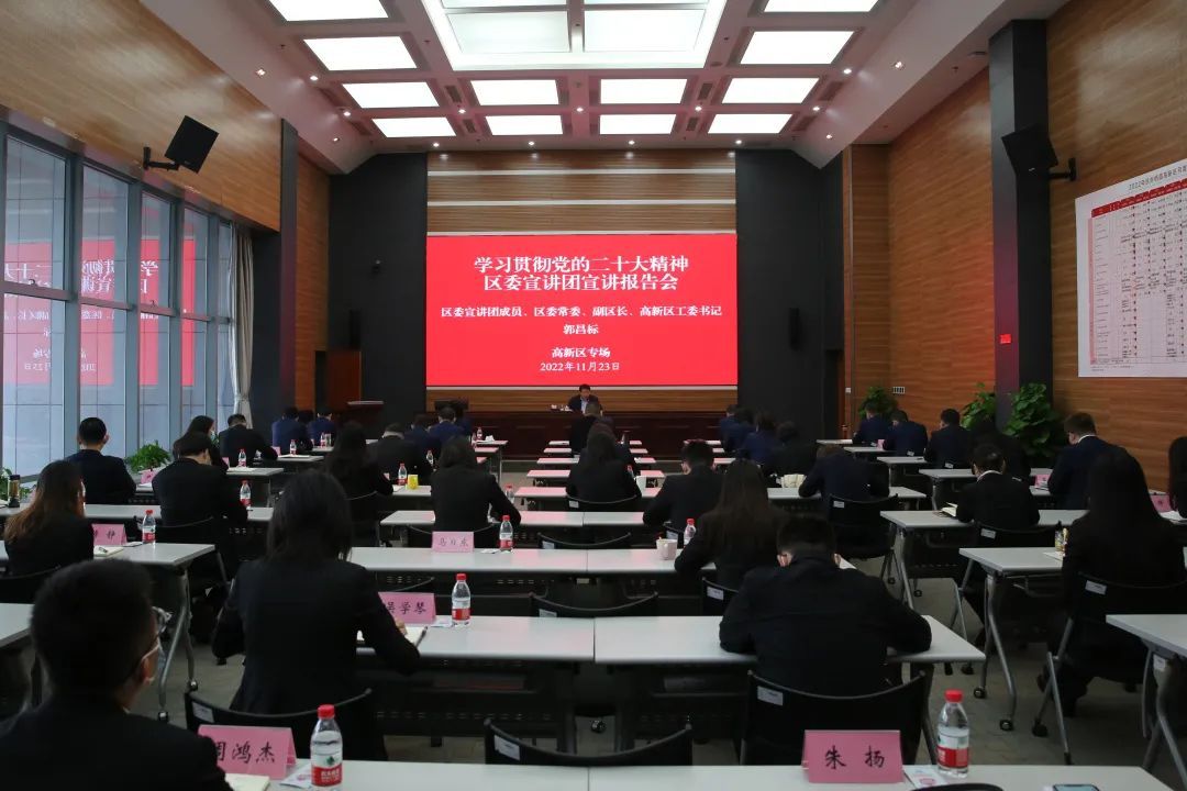郭昌標緊扣黨的二十大報告原文,圍繞黨的二十大的主題和主要成果、過去5年的工作和新時代10年的偉大變革、馬克思主義中國化時代化、中國式現(xiàn)代化的中國特色和本質(zhì)要求、全面建設(shè)社會主義現(xiàn)代化國家的目標任務(wù)、黨的全面領(lǐng)導(dǎo)和全面從嚴治黨、發(fā)揚斗爭精神增強斗爭本領(lǐng)應(yīng)對風險挑戰(zhàn)等,結(jié)合自己的學(xué)習思考,緊密聯(lián)系高新區(qū)實際,對黨的二十大精神作了全面宣講和深入闡釋。