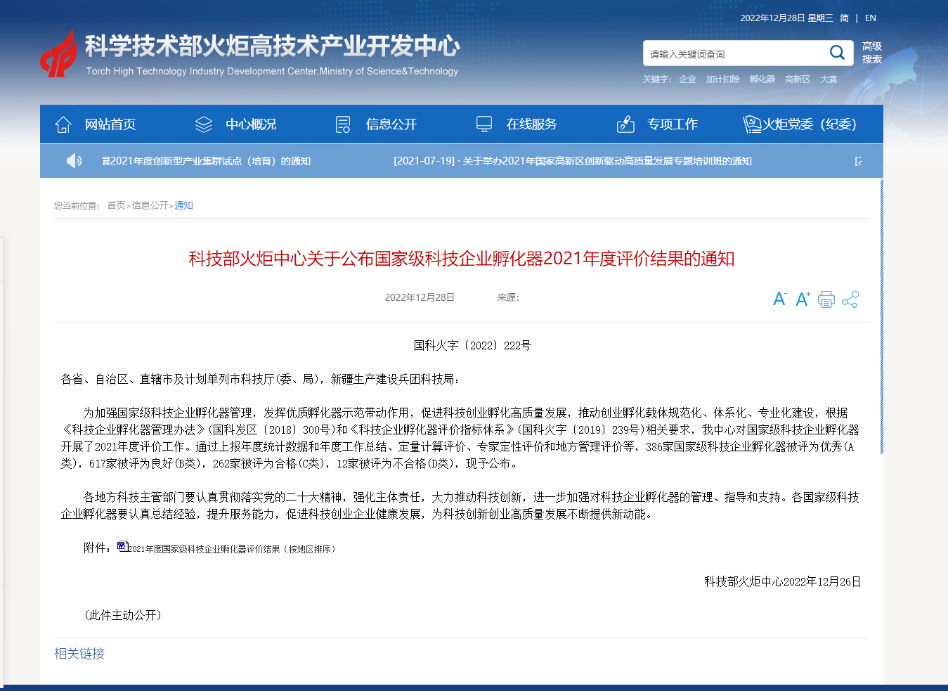 根據(jù)科技部火炬中心關于公布國家級科技企業(yè)孵化器2021年度評價結(jié)果的通知,棲霞高新區(qū)自有3家國家級科技企業(yè)孵化器南京金港科技創(chuàng)業(yè)中心、江蘇生命科技創(chuàng)新園國際生物醫(yī)藥孵化器和南京紫東國際企業(yè)孵化器在國家級績效評價全部獲評績效評價優(yōu)秀(A類)。此次共1277家國家級孵化器參與績效評價,其中386家國家級科技企業(yè)孵化器被評為優(yōu)秀(A類)。