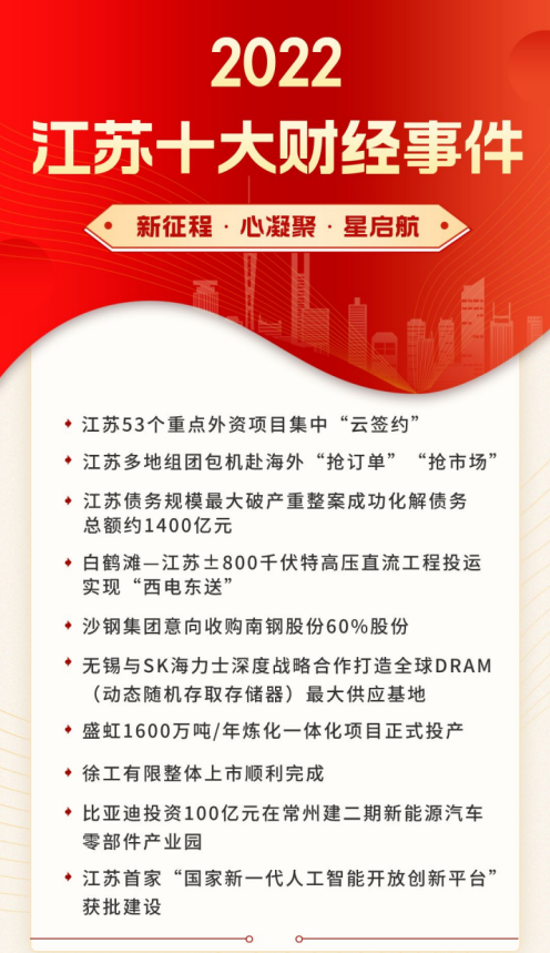 50家企業(yè)榮獲“2022江蘇新銳企業(yè)”,分屬于新能源、信息技術、制造業(yè)、生物醫(yī)藥以及半導體五個細分領域賽道。會上還公布了“2022江蘇十大財經(jīng)熱詞”、“2022江蘇十大財經(jīng)事件”、“2022江蘇財經(jīng)人物”,從多維度濃縮江蘇財經(jīng)領域的集體記憶,也從不同角度展現(xiàn)出了一個砥礪前行、氣象萬千的奮斗江蘇。